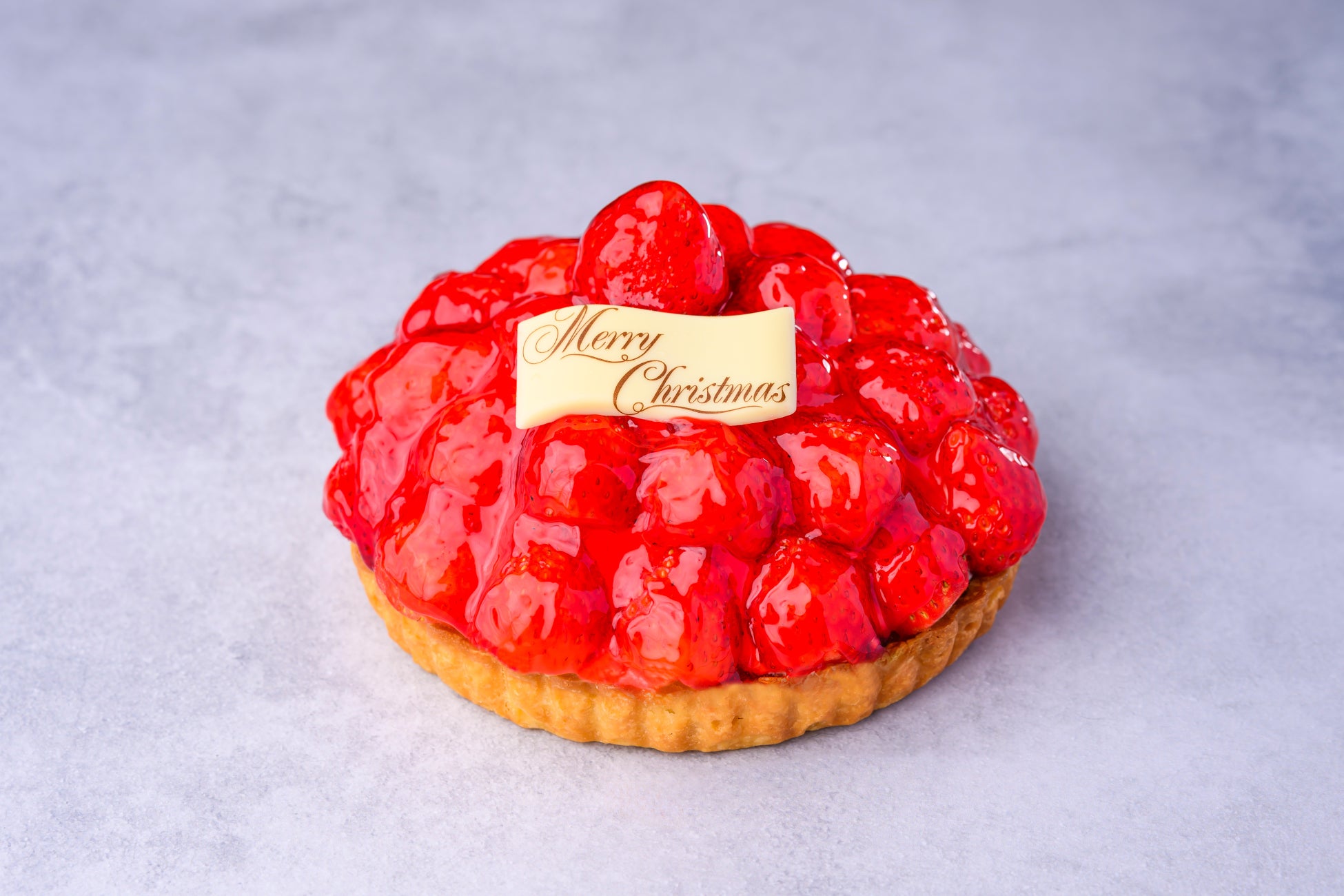 アーモンドの風味を効かせたタルト生地を丁寧に焼き上げ、中心部にマスカルポーネクリームをしのばせ、なめらかな生クリームとカスタードクリームを重ねました。艶やかな国産いちごをたっぷりトッピング。最後に、いちごのナパージュで光をまとい、まるで宝石のような一品に仕上げました。重厚感のある味わいと華やかなビジュアルで、大人のクリスマスにもぴったりです。