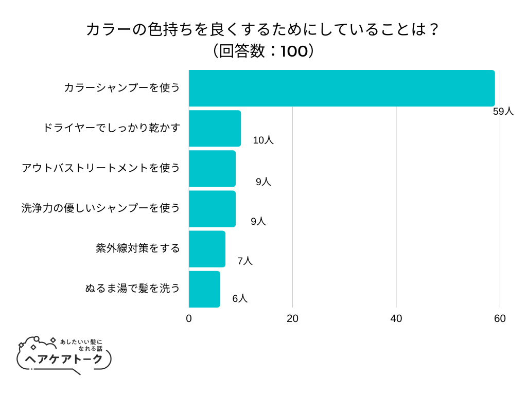 美容室で髪をしっかり乾かすと色持ちが良くなると聞いたから、髪が傷むと色持ちが悪くなるからという意見が多くありました。