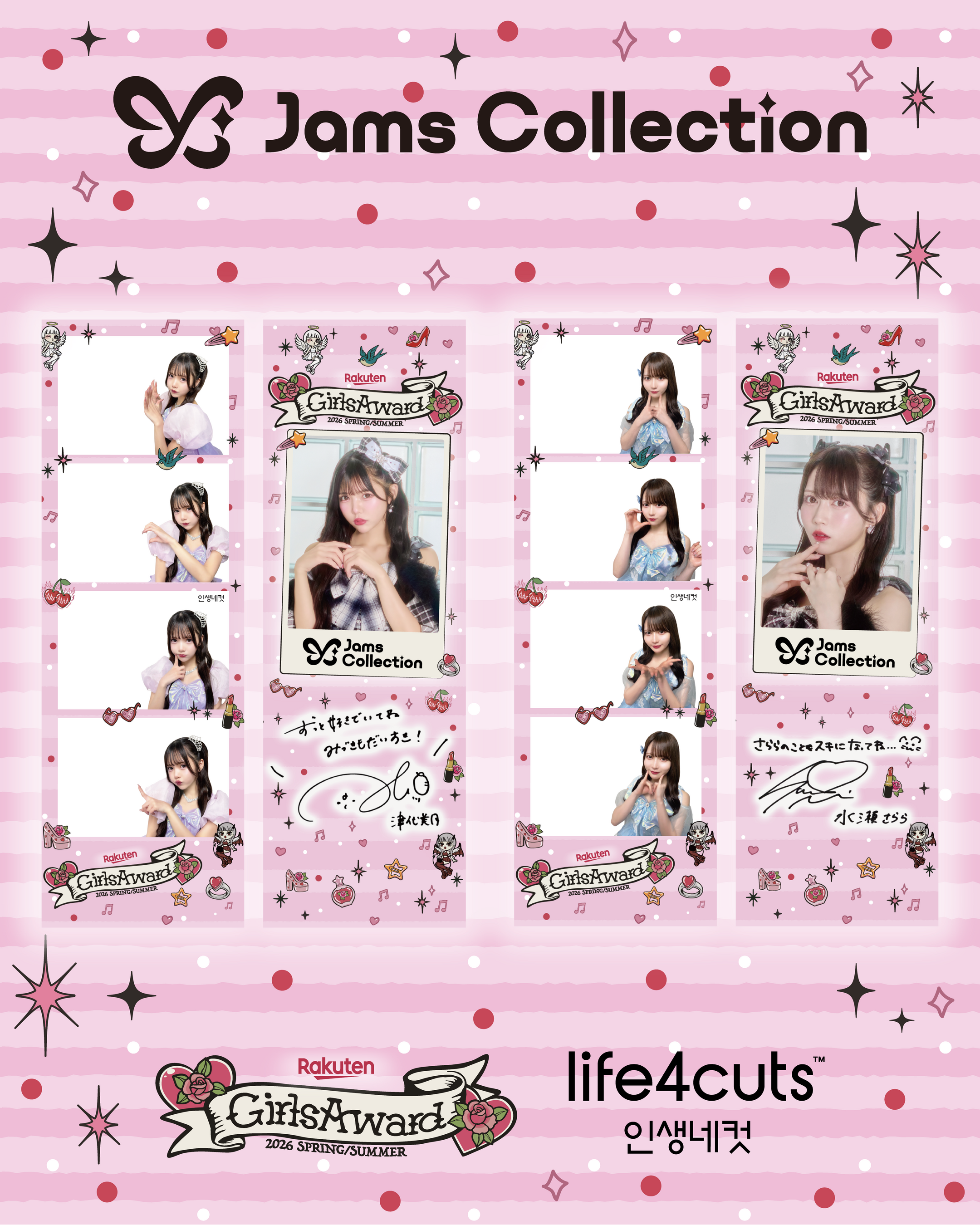 株式会社DONGRAMY PROJECT(本社:福岡県北九州市)が運営する韓国発のセルフフォトプリント「人生4カット」は、2026年4月18日(土)に代々木第一体育館にて開催される日本最大級のファッション&音楽イベント「Rakuten GirlsAward 2026 SPRING/SUMMER」に出演する、新世代の王道アイドルグループ「Jams Collection」のメンバー、津代美月さん、水瀬さららさんとのトリプルコラボレーションによる、限定オリジナルフレームの展開を決定いたしました。