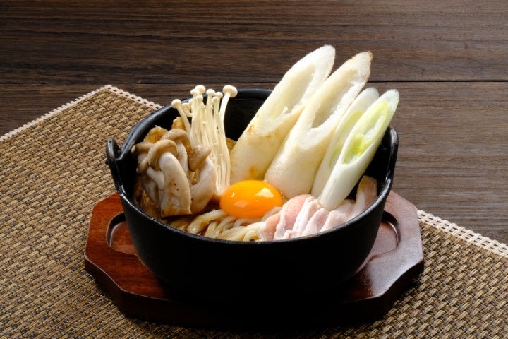 コクの深い甘口の煮込みうどんに、秋田名物きりたんぽを加えた特別な一品。