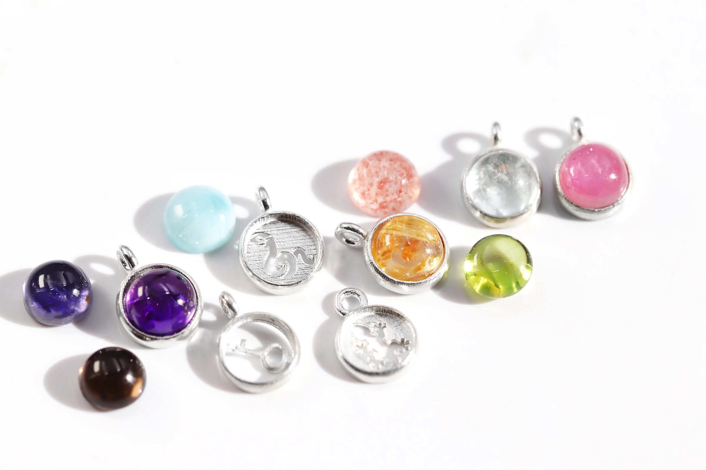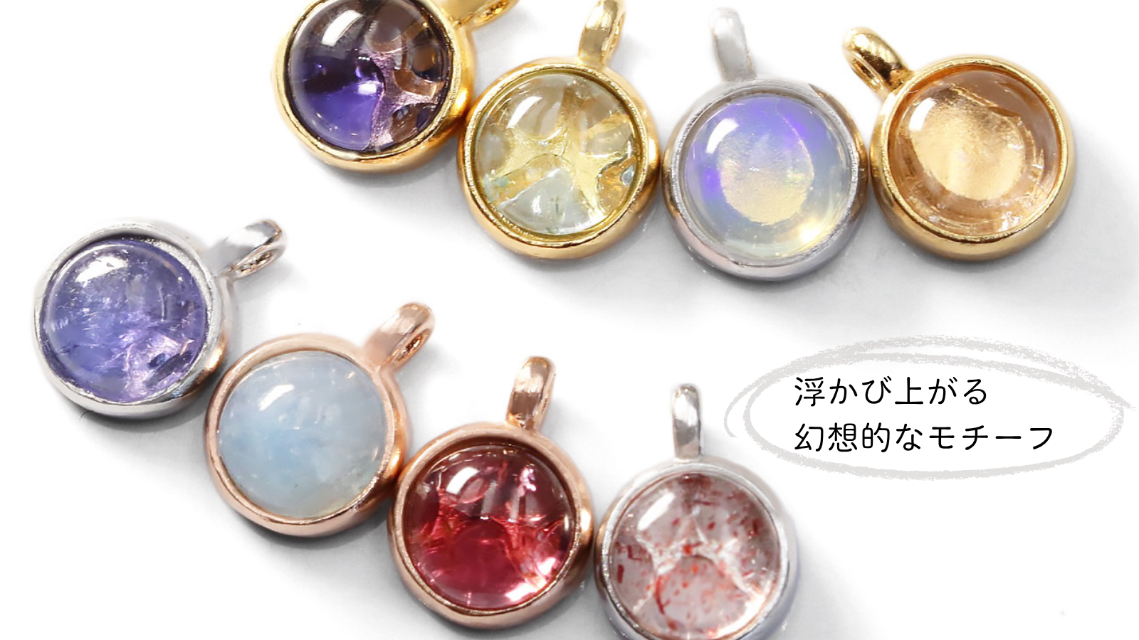 Cabocharmという名は、Cabochon(カボション=丸みを帯びた宝石カット)とCharm(チャーム=小さな飾りやお守り)を組み合わせた造語です。