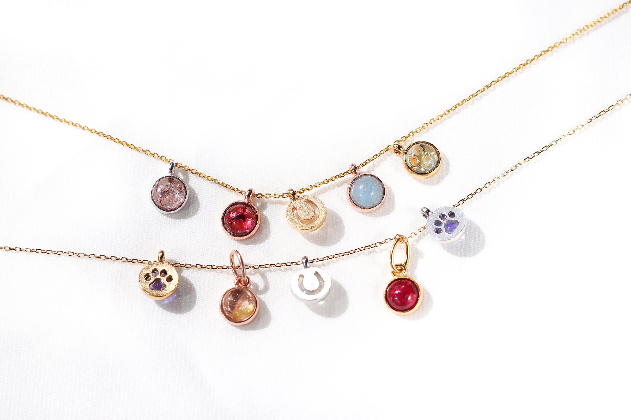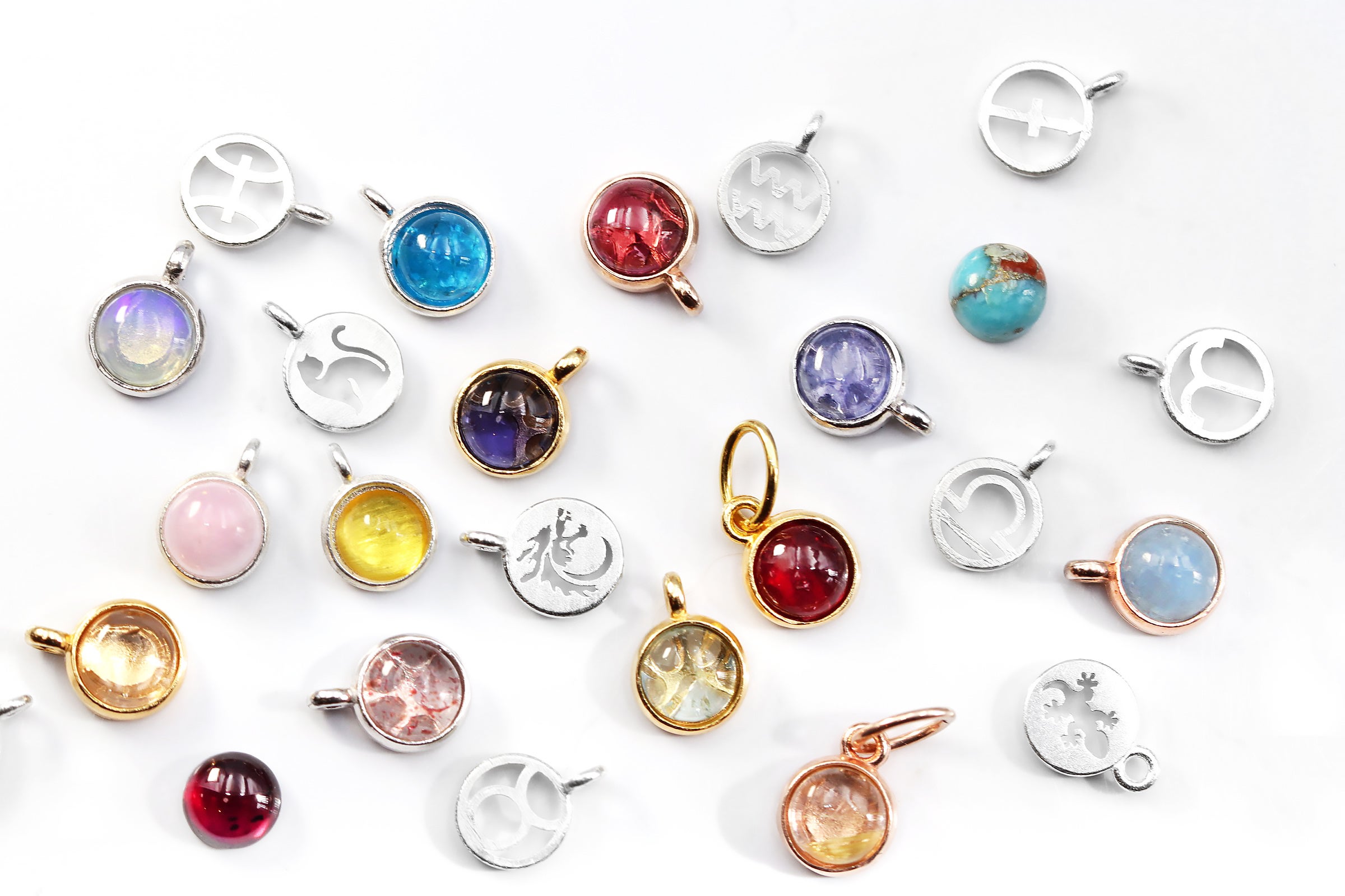 K18またはPt900で仕立てた宝石チャームが9,800円(税込)から。