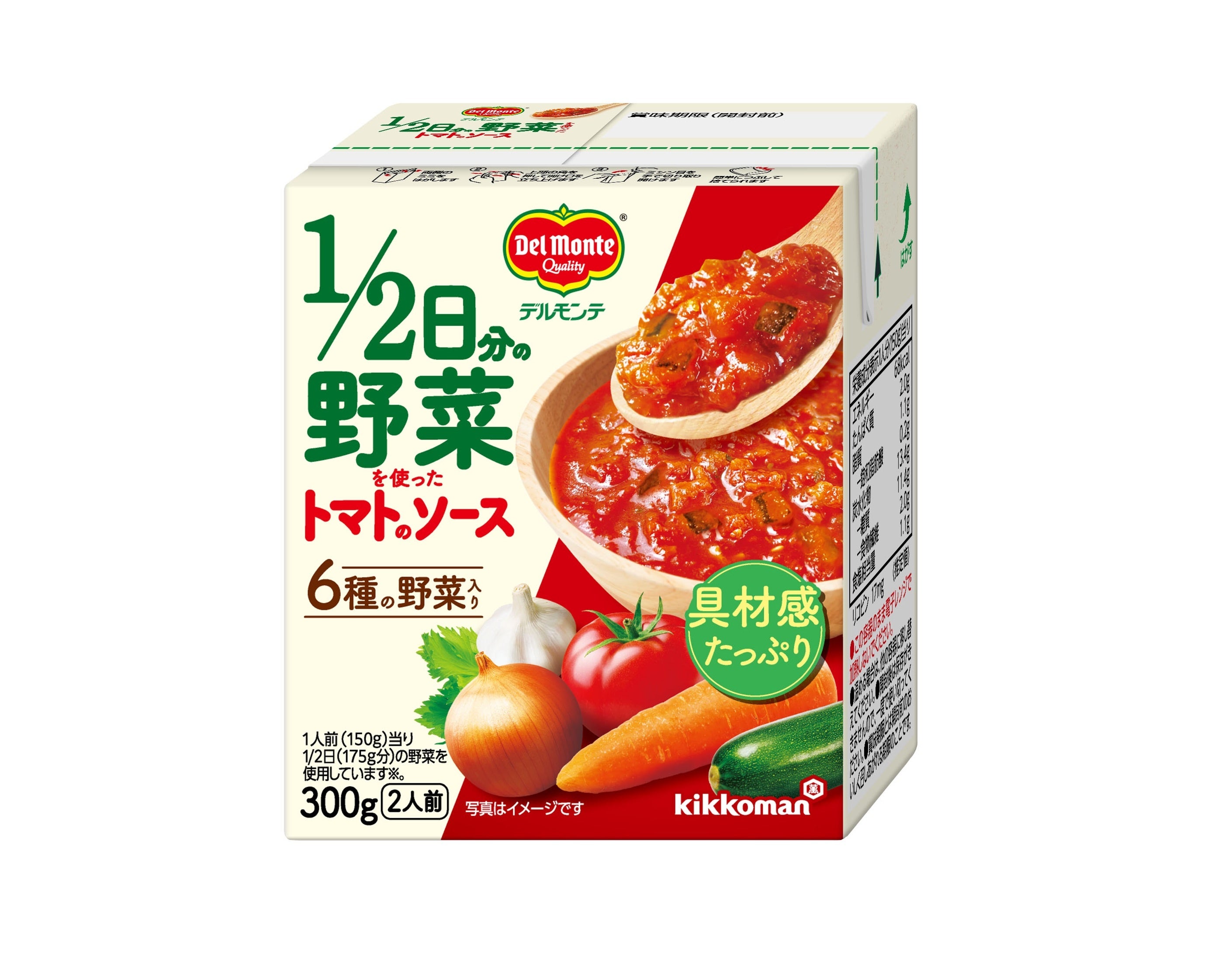 キッコーマン食品株式会社は、3月16日に、1/2日分の野菜(*)を使用した「デルモンテ 1/2日分の野菜を使ったトマトのソース」を全国で新発売します。