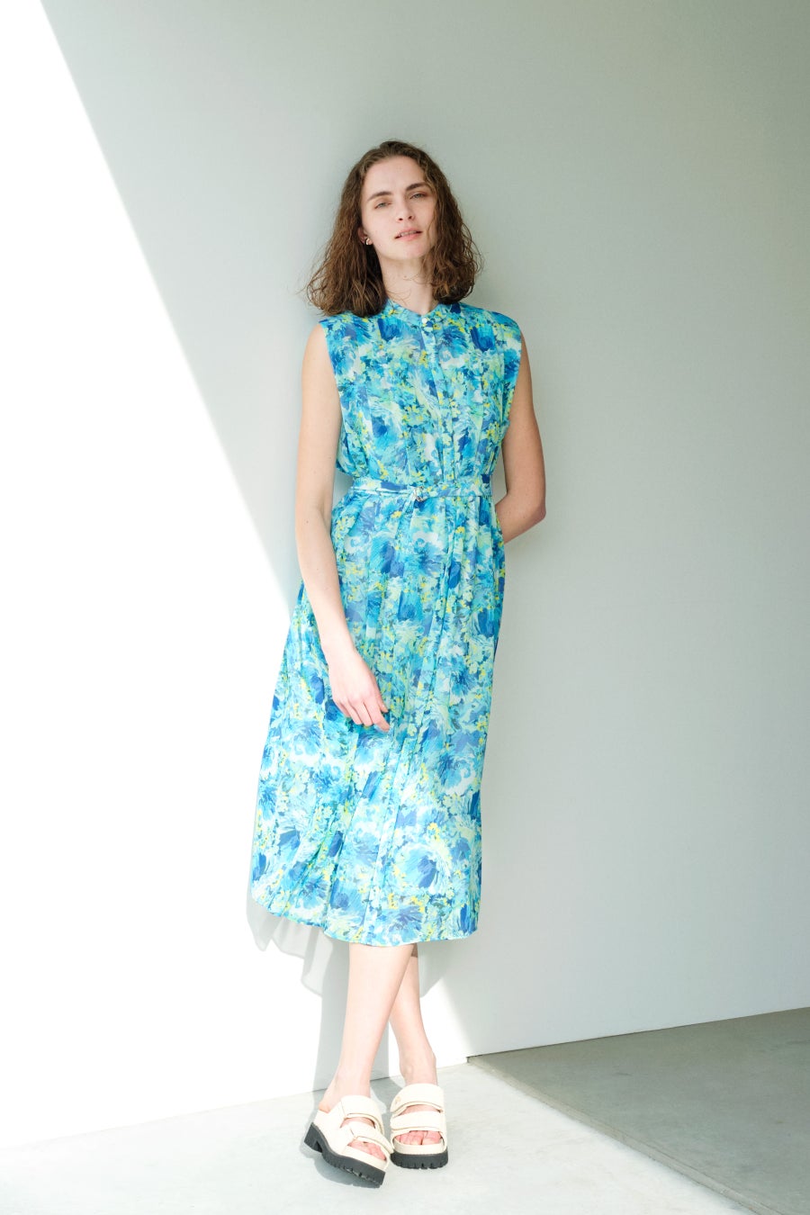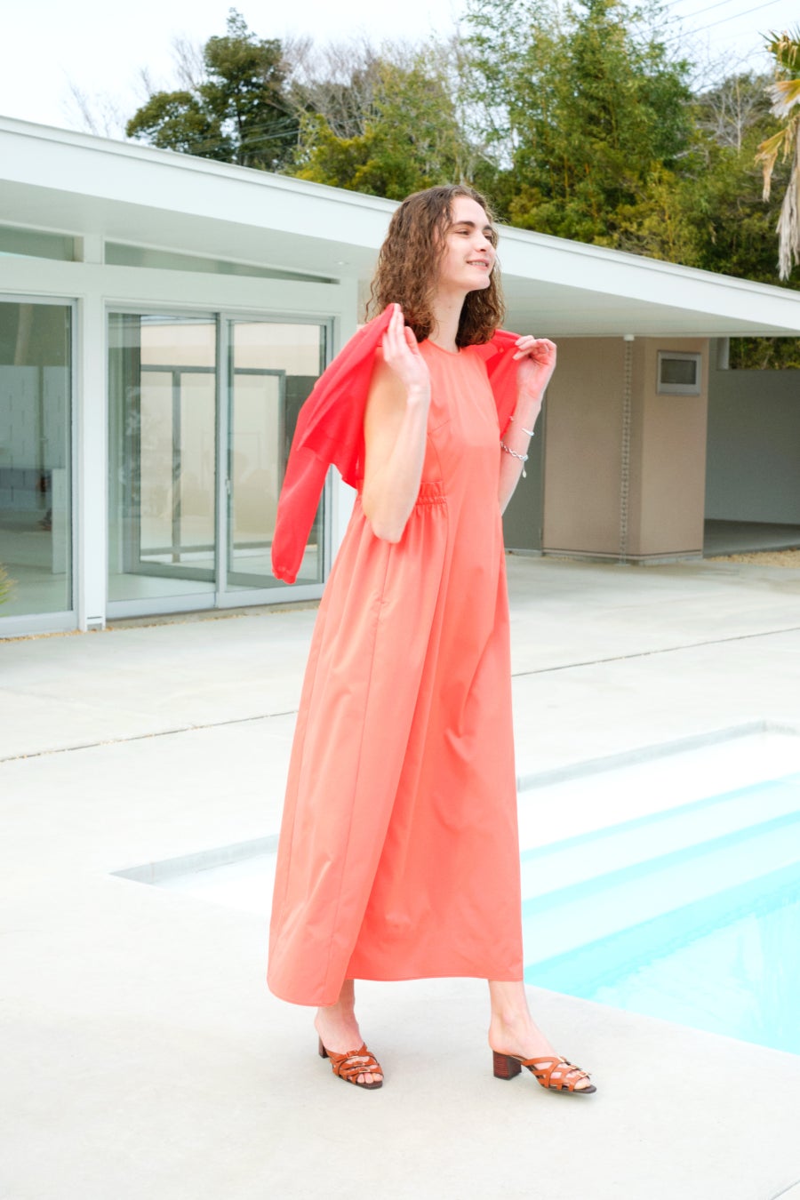 スタイルアップが叶う、こだわりが詰まったノースリーブのマキシワンピースは、上品な光沢感とナチュラルタッチを併せ持つ素材感が特徴です。