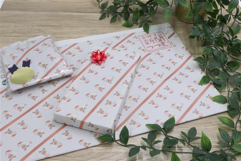 「つつむ」は、新聞印刷の仕組み上、どうしても使いきれずに残る紙をアップサイクル(*2 )して生まれた、環境にやさしいラッピングペーパーです。9月に開催された「第100回東京インターナショナルギフト・ショー秋2025」では、お客様から「新聞紙で作られたラッピングペーパーは今まで見たことがなくて斬新」「新聞とは思えないかわいらしいデザイン」といった声を多数いただきました。今回のマーケットではクリスマスにちなんだ限定デザインもお目見え。新聞紙ならではのちょっとレトロな風合いと、他にはないストーリー性、そして心ときめくデザインで、とっておきの贈り物をしてみませんか。