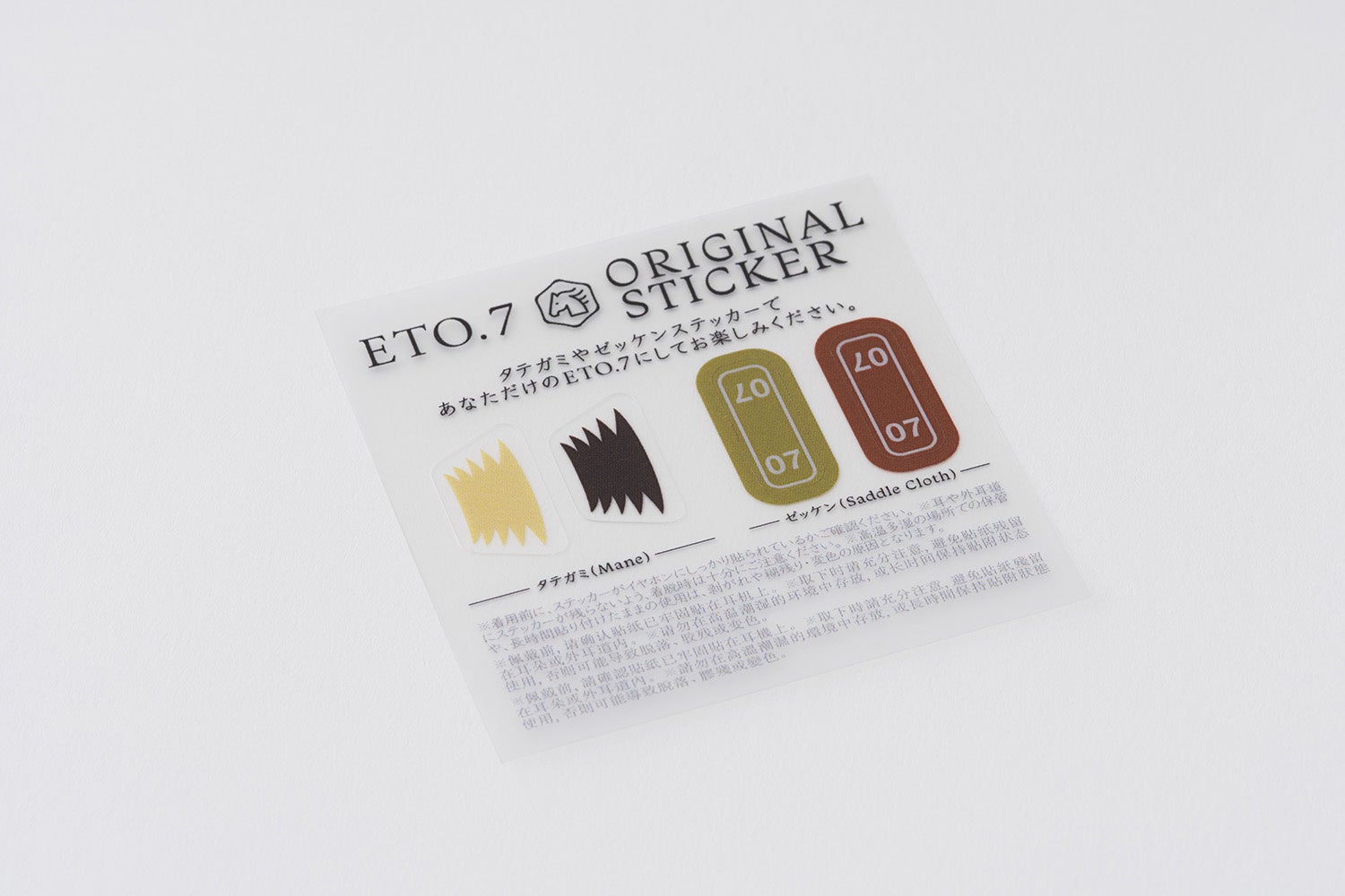 さらに、おまけとして「タテガミ」と「ゼッケン」をモチーフにしたオリジナルステッカーを同梱しました。ぜひあなただけの「ETO.7」をお楽しみください。