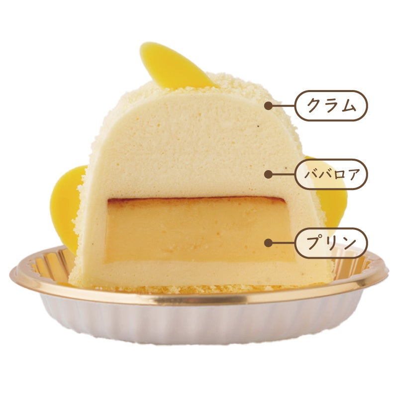愛知県の地元食材「名古屋コーチン」の卵を使ったプリンを、バニラの香り豊かなババロアで包み込み、粉末状にしたスポンジをまとわせた、ふんわり「ひよこ」の形に飾り付けた生スイーツです。