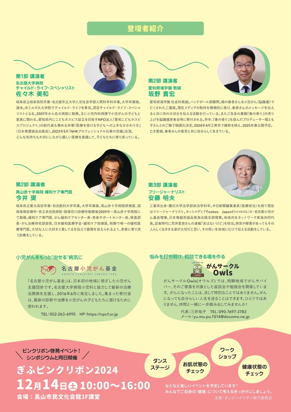 申込み方法:高山市民文化会館でチケット購入または、がんサークルOwls代表 三井さんへ電話(090-7697-3783)