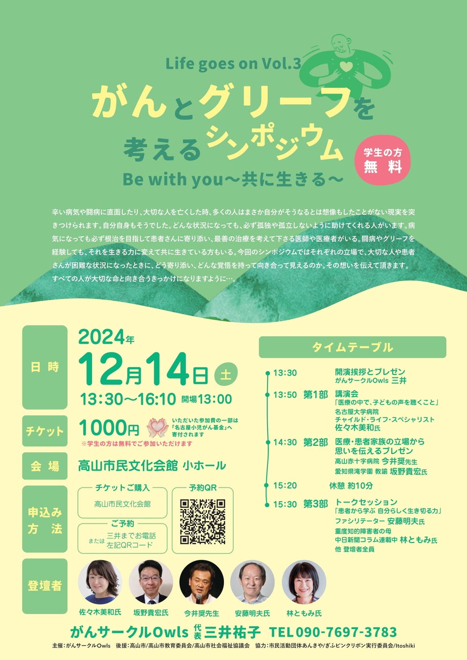 【岐阜県高山市】「がんとグリーフを考えるシンポジウム Be with you~共に生きる~」が開催されます