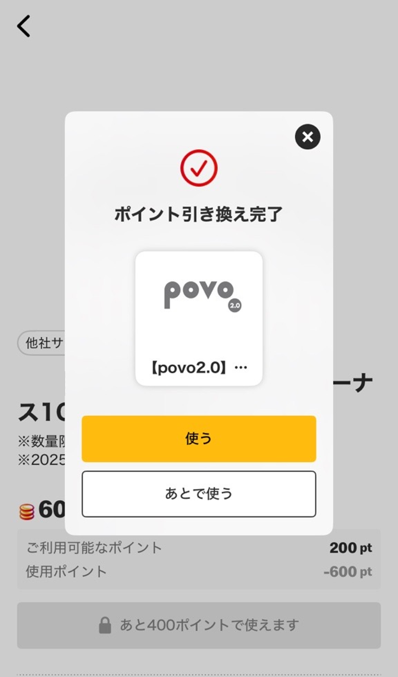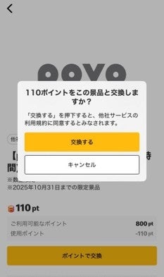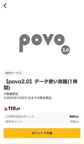 2.「Myマクドナルド リワード」一覧よりpovo2.0トッピングを選択し、ポイントと引き替え