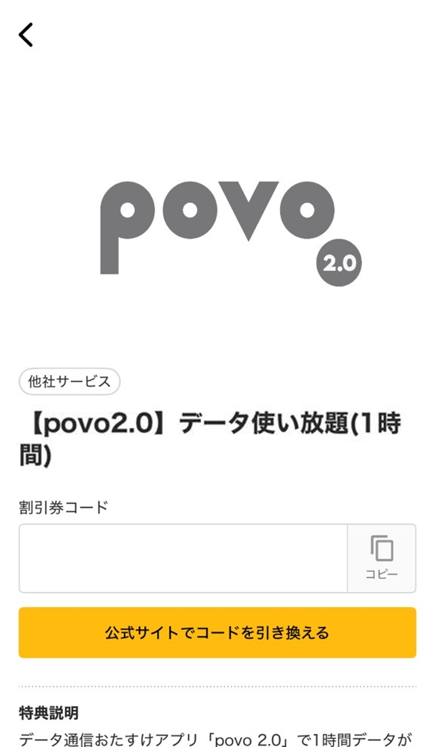povo2.0のデータトッピングは、プロモコード形式で提供されるため、ユーザーは好きなタイミングで利用可能です。たとえば、ゲームや動画視聴、SNSを楽しみたいときには「データ使い放題(1時間)」、普段あまりデータを使われない方やもしものギガ不足に備えたい方は「1GB(30日間)」をチャージするなど、貯めたポイントを使ってpovo2.0を今ご利用の回線のサブ回線として、日常のさまざまなシーンで便利に利用できます。