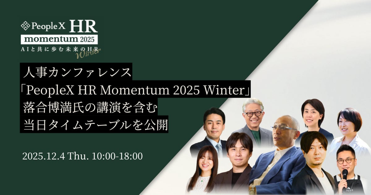 採用から活躍支援まで、AIで人事課題を解決する株式会社PeopleX(本社:東京都新宿区、代表取締役CEO:橘 大地、以下:当社)は、2025年12月4日(木)に開催する人事カンファレンス「PeopleX HR Momentum 2025 Winter」の講演内容と当日タイムテーブルを決定し、カンファレンス詳細ページに公開いたしました。
