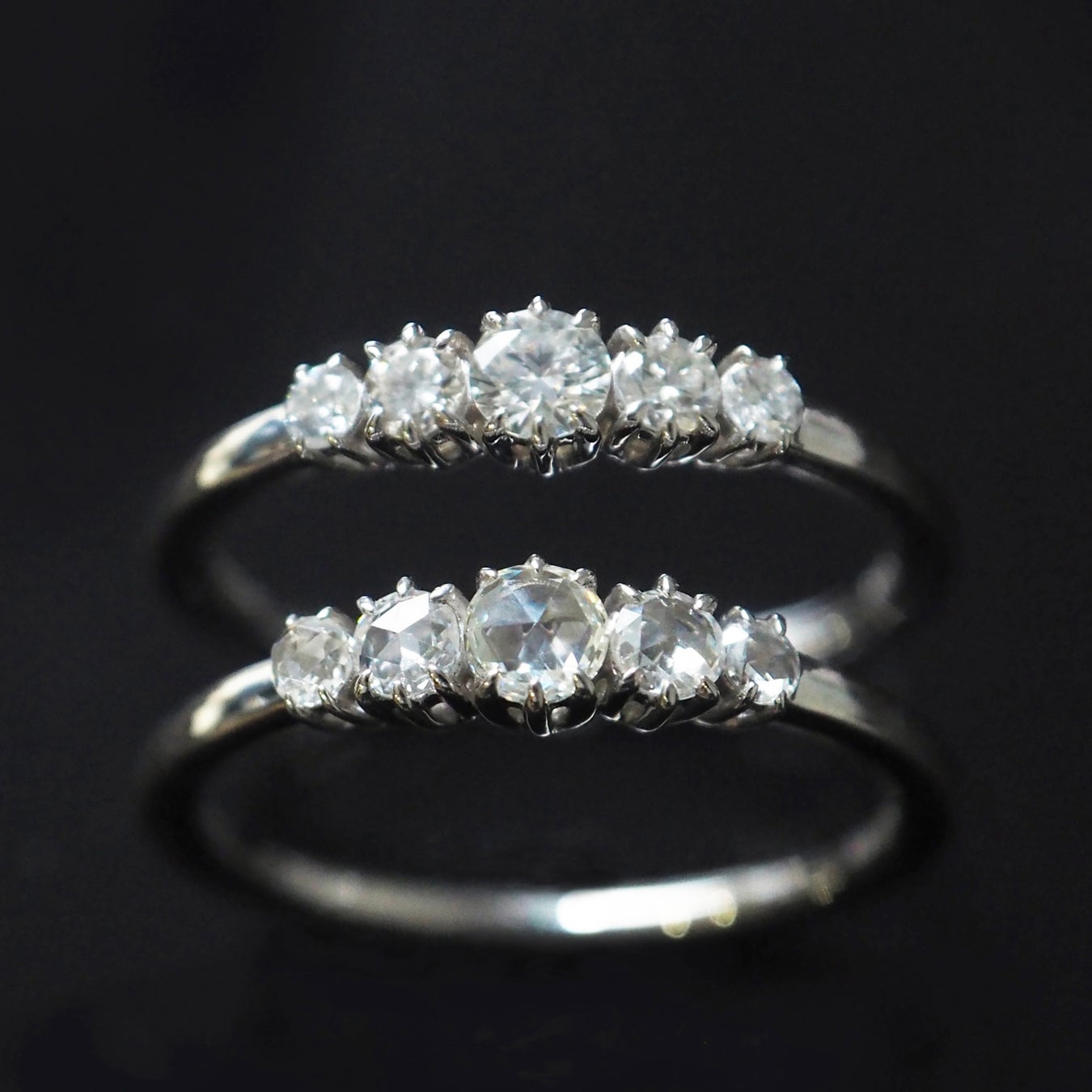 手仕事による繊細なミルと、ダイヤモンドの静かな煌めきが調和する「ミルゴシック」シリーズ。京都店でも高い人気を誇る本シリーズに、待望の新作“レール留め”仕様が加わりました。こちらのコレクションも、これまで常設店ではご紹介の機会が限られておりました。