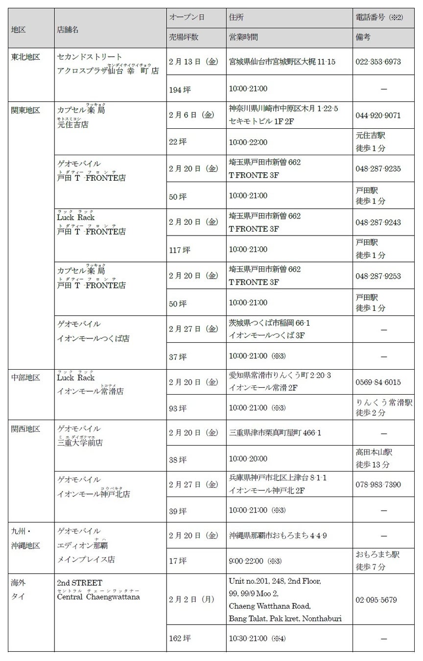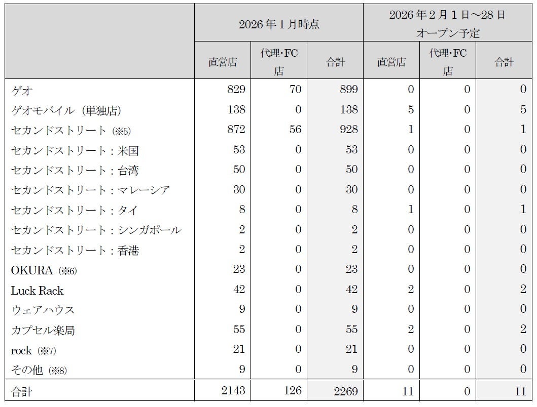 (※5)スーパーセカンドストリート、セカスト各専門店、ジャンブルストア、Doki-Doki、Oki-Doki含む