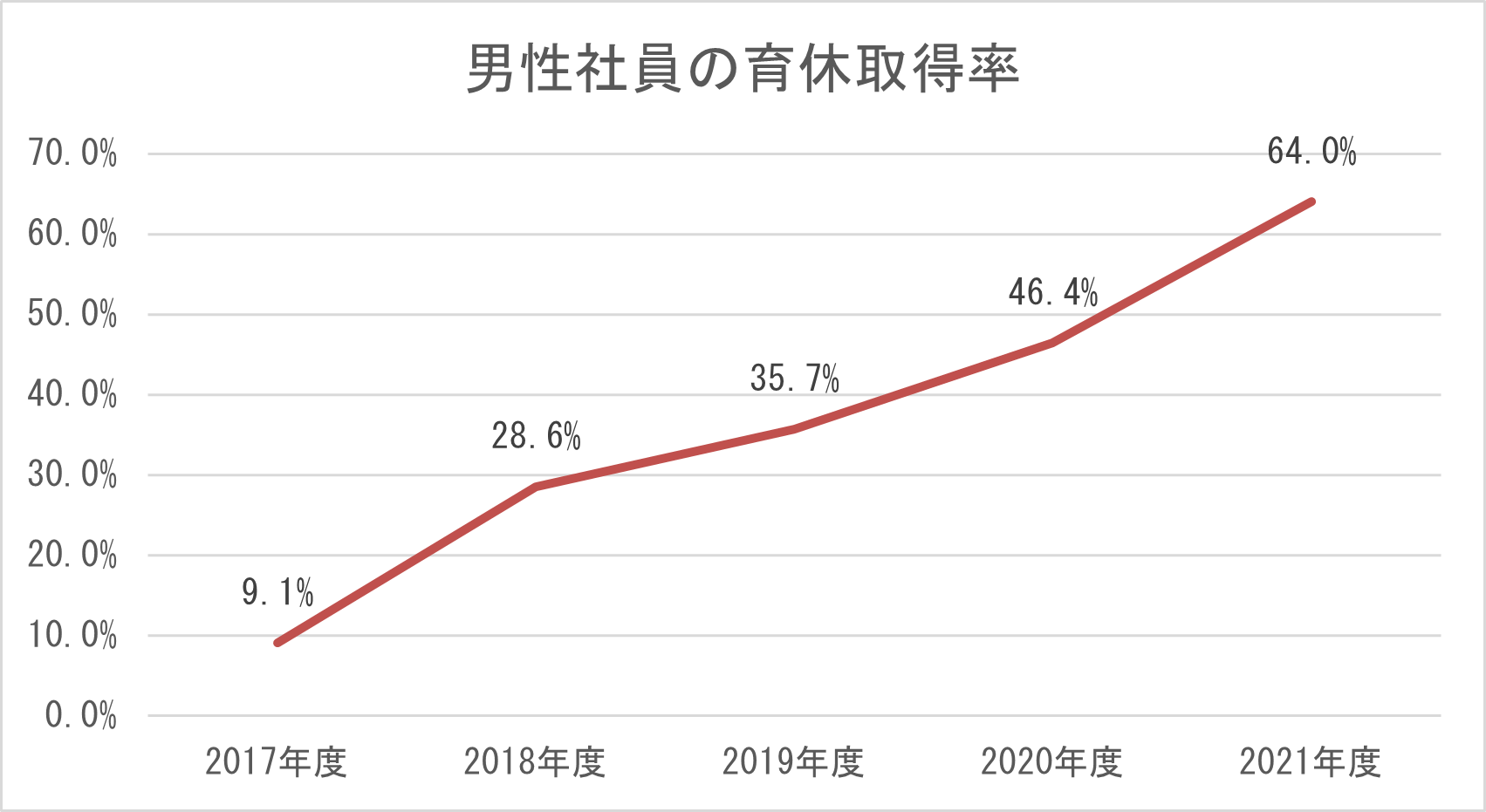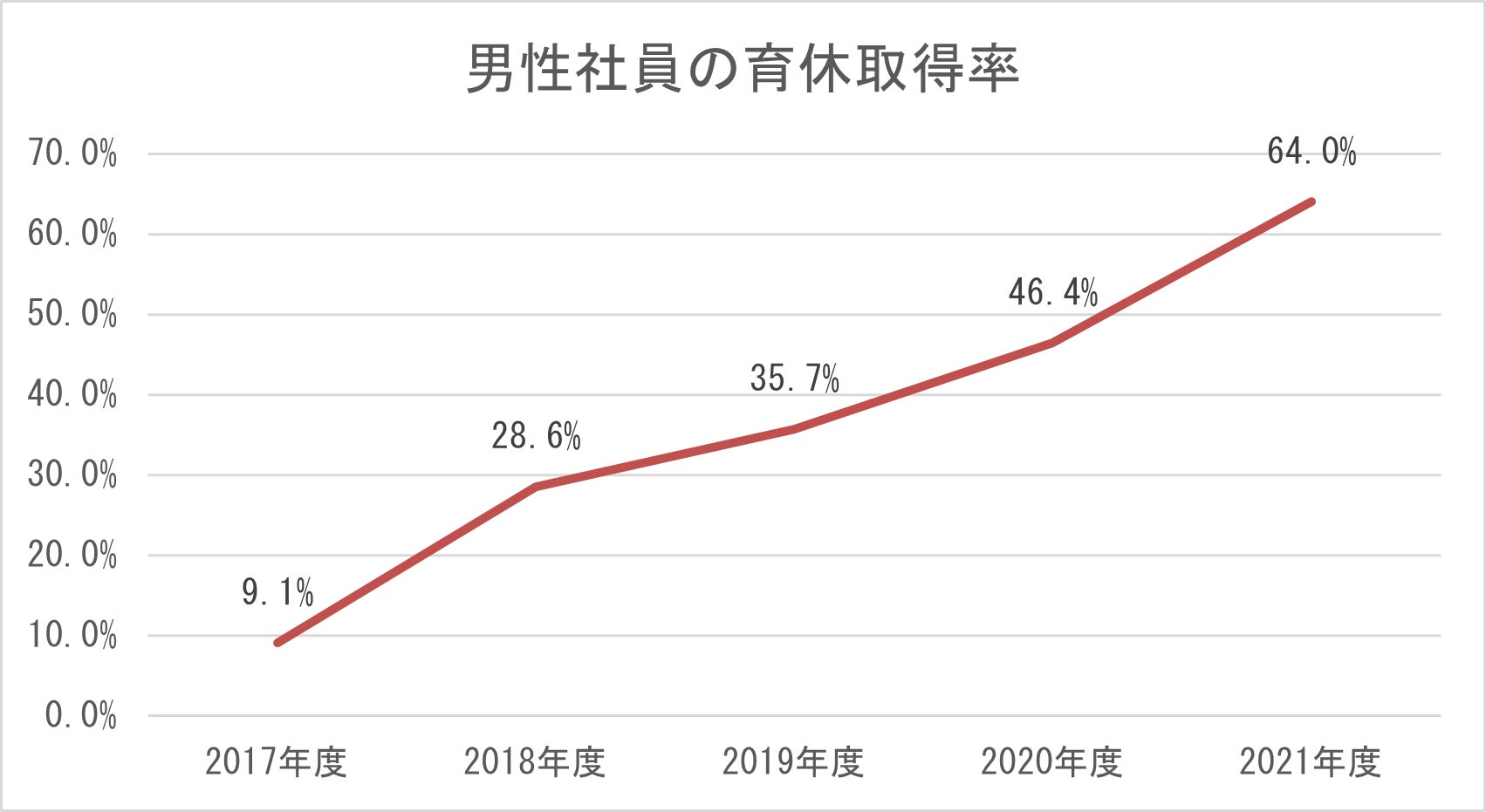 ●2020年度には46.4%、2021年度は64%の男性社員が育休を取得