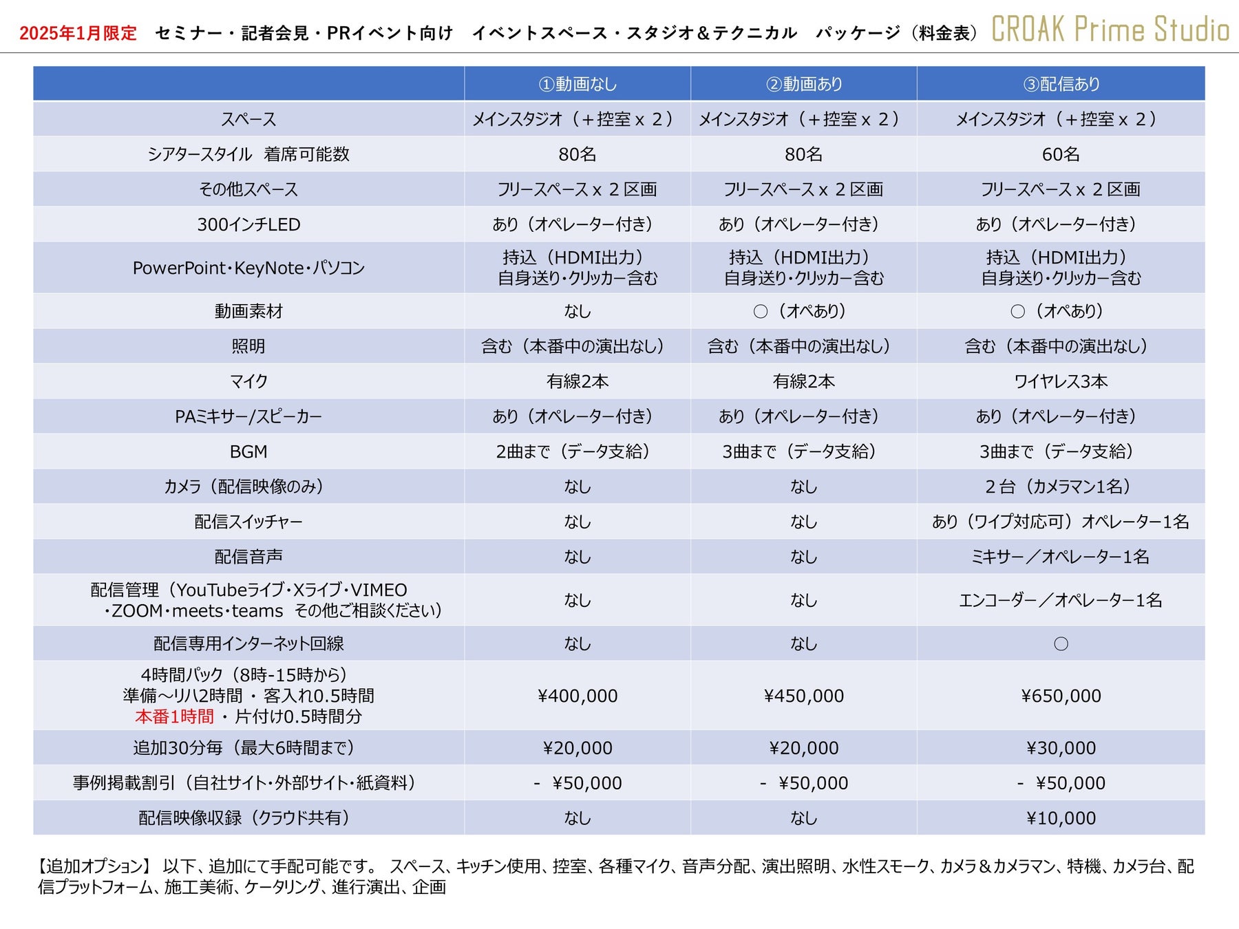 2026年1月限定 セミナー・記者会見・PRイベント向け イベントスペース・スタジオ&テクニカル パッケージ