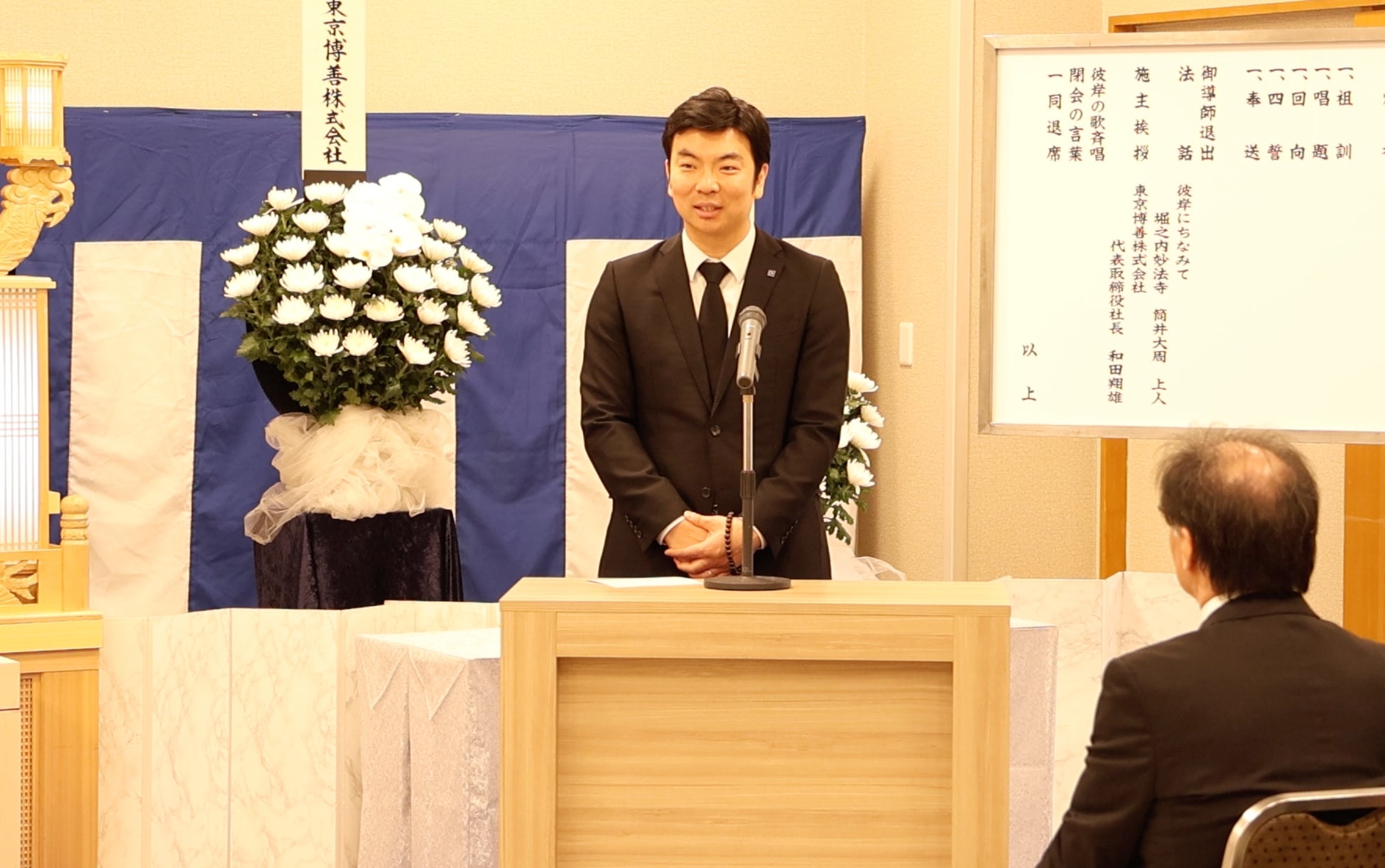 施主となります代表取締役社長 和田翔雄からは、「彼岸供養会」は皆様への感謝と故人様への哀悼を捧げる機会であること、火葬というお仕事の本来の役割は奉仕の心であるとの旨、お話をさせていただきました。