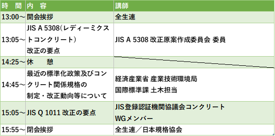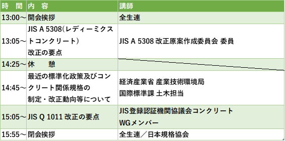 規格説明会【お申込受付開始!】JIS A 5308(レディーミクストコンクリート)改正説明会