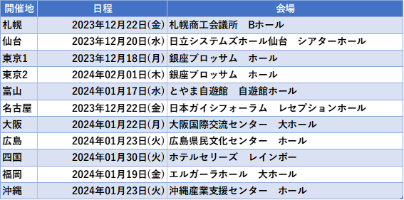 各会場にて、ご受講いただけますので、是非ご参加をご検討ください。
