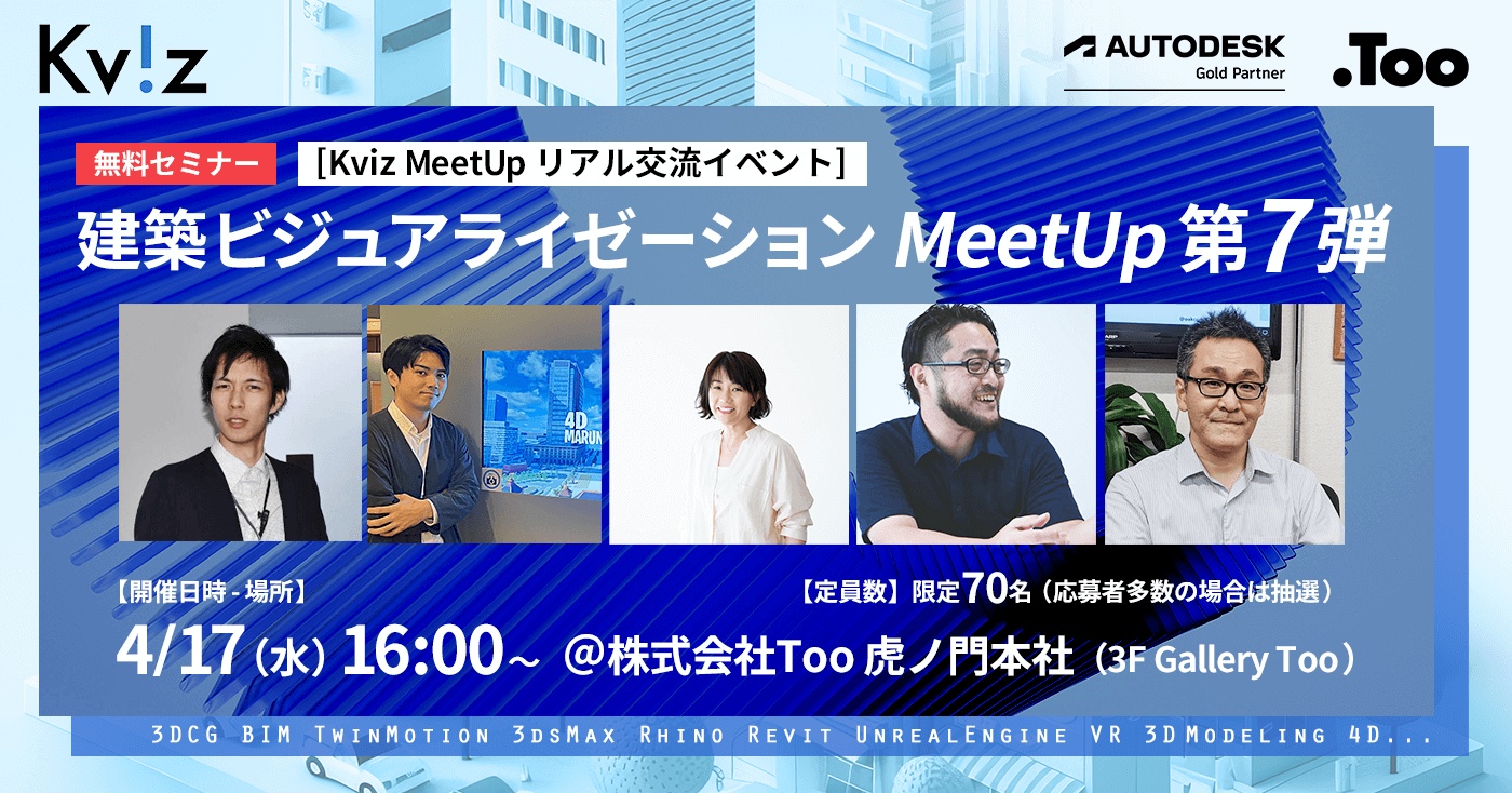 [Kviz MeetUp リアル交流イベント]建築ビジュアライゼーションMeetUp第七弾を2024年4月17日(水)東京・虎ノ門にて開催