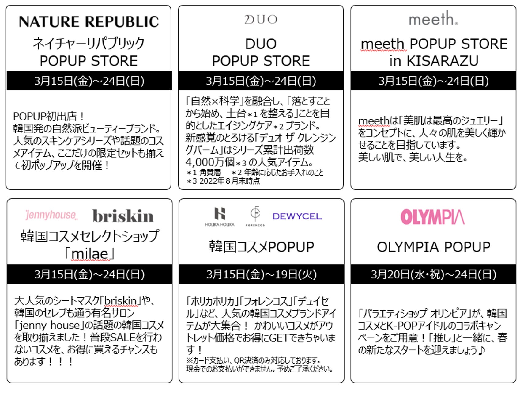 各メディアやSNSでも話題の韓国コスメブランド初出店や、国内人気ブランドなど最大6店舗が登場!