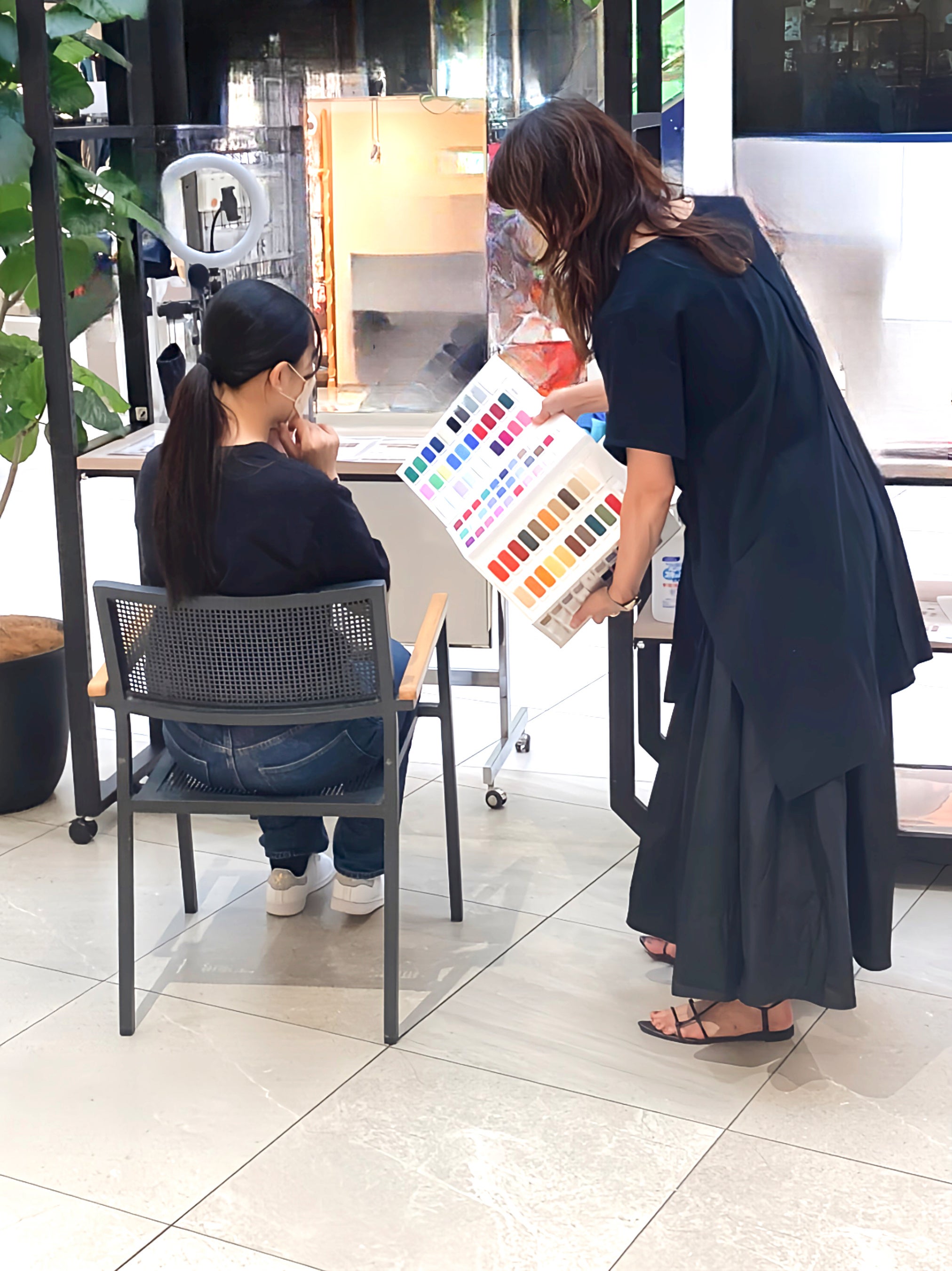プロのカラーアナリストがカラードレープを使用してあなたに「似合う色」を見つけます。