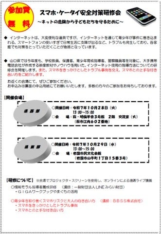 BBSS、山口県主催の「スマホ・ケータイ安全対策研修会」にて講演を実施