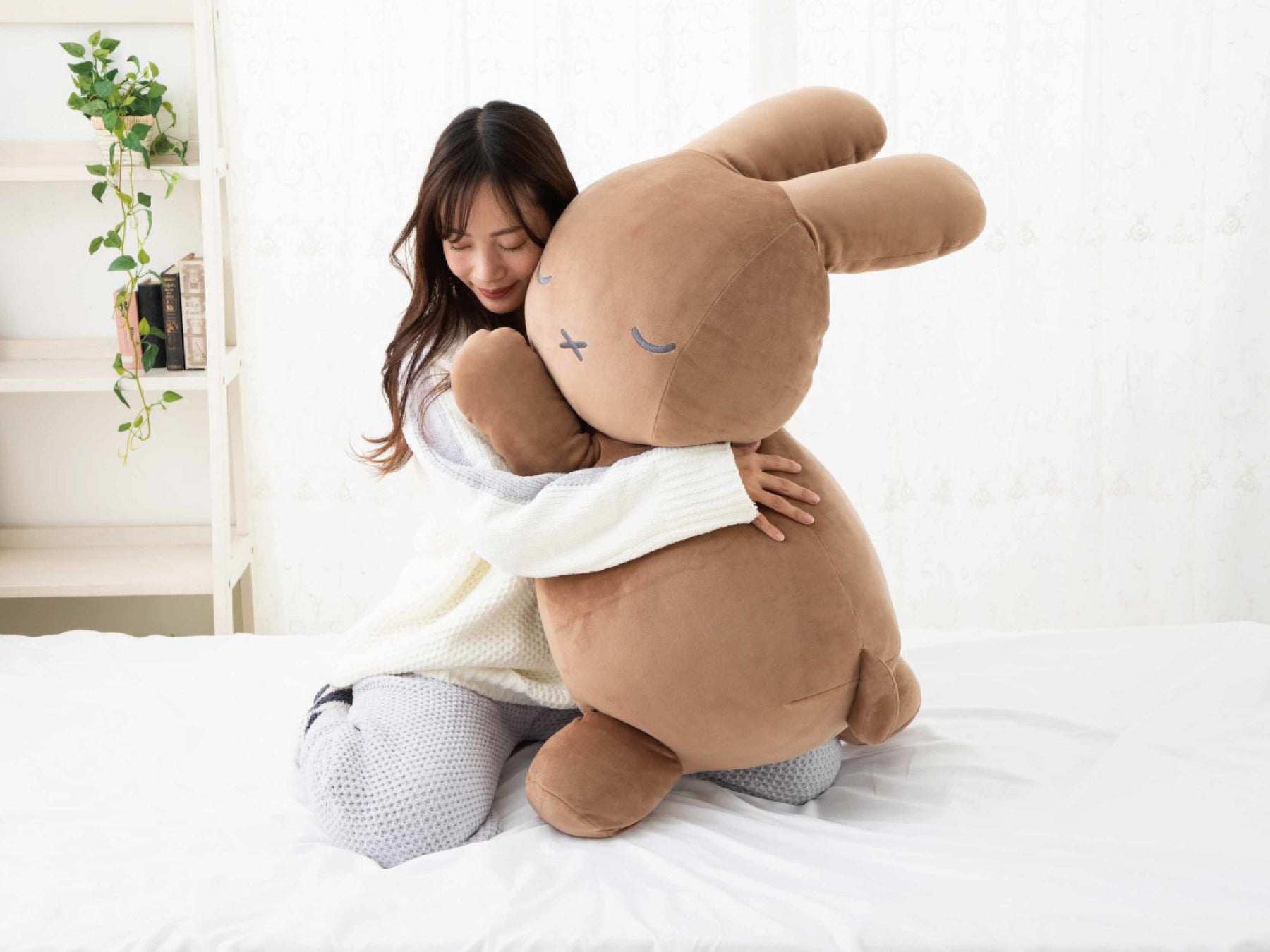 「すやすやフレンド おうちでリラックス」の第1弾として2020年11月に受注販売を行なった商品が『ブルーナ すやすやフレンドおうちでリラックス うさぎ』です(現在は販売終了)。絵本作家・グラフィックデザイナーとして世界的に活躍したディック・ブルーナが描いたうさぎをぬいぐるみにしたもので、Sサイズのうさぎの寝姿をそのままに、本体サイズを約80cm、体積比約52倍と大きくした商品で、当社の想定を上回る非常に多くの注文が集まりました。