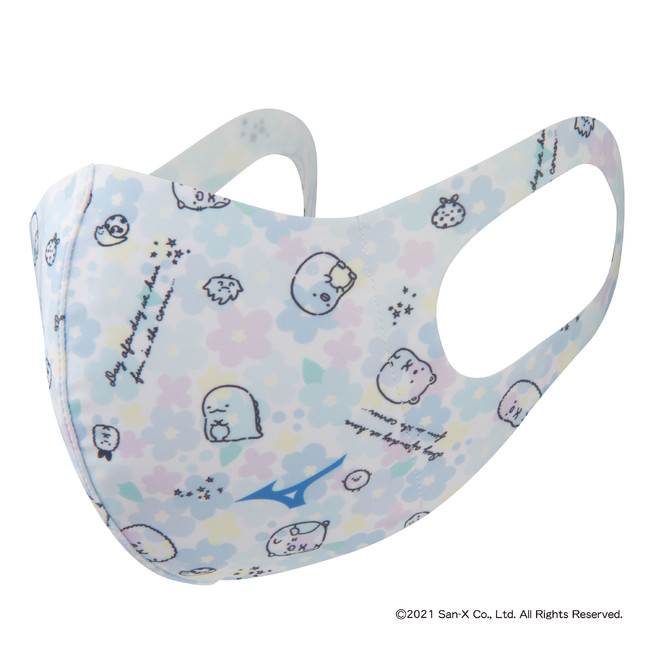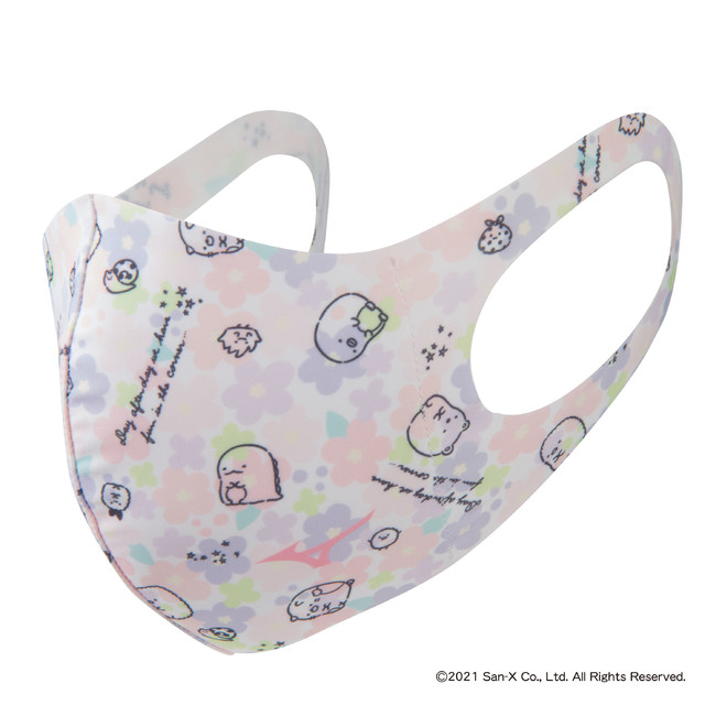 「すみっコぐらしミズノマウスカバー」は、昨年5月に発売したものと同様に水着や陸上ウエアで使用している伸縮性に優れた2wayストレッチトリコット素材を使用しています。内側にはミズノ独自の肌触りの良いソフトな素材を使用し、フェイスラインを優しく包み込む設計のため、顔にフィットし、ストレスが少なく、飛沫拡散を抑制します。なお、繰り返し手洗い洗濯が可能です。