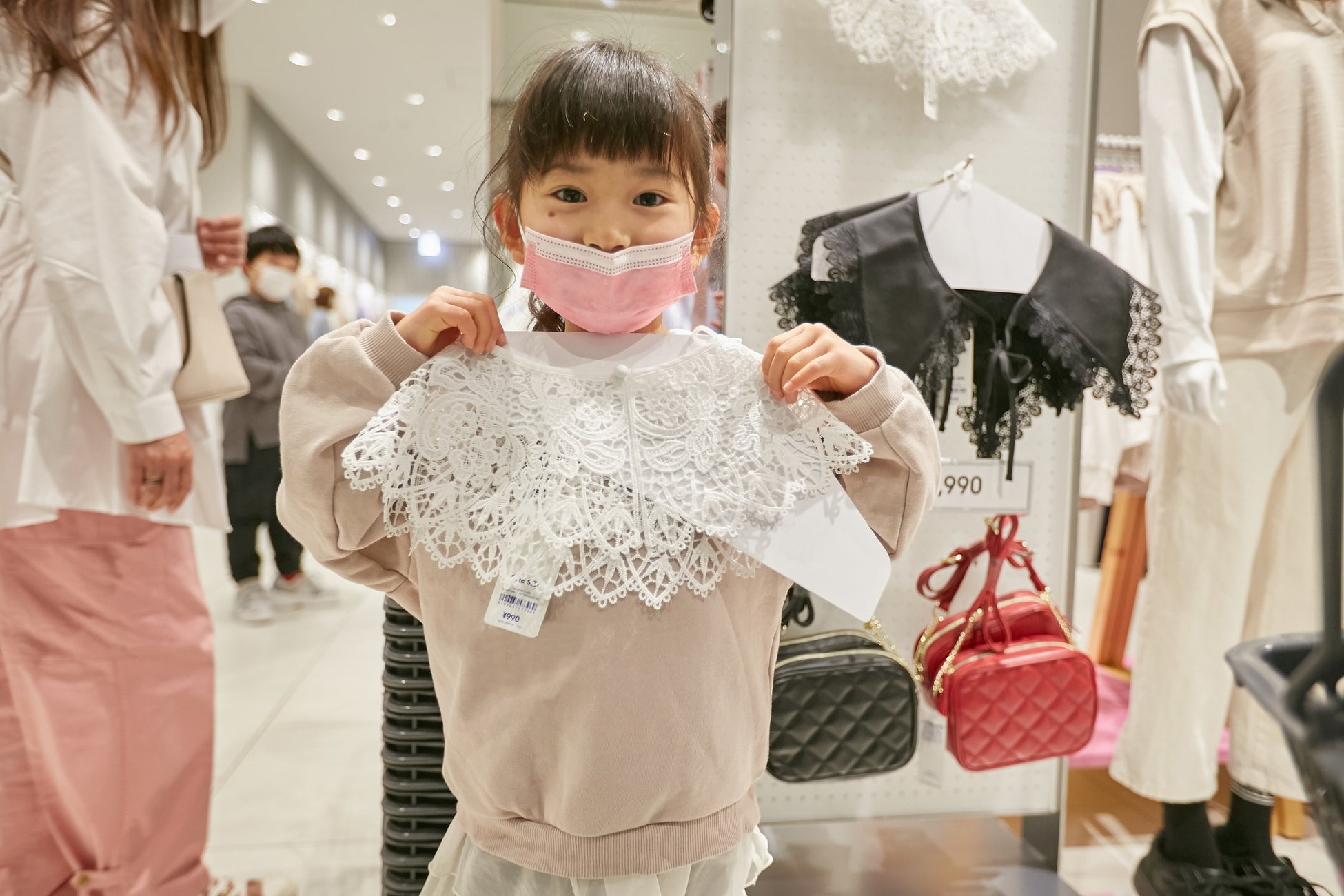 また、服選びのポイントなどもレクチャーします。 保護者はお子さまと離れ、店内でお待ちいただきます。