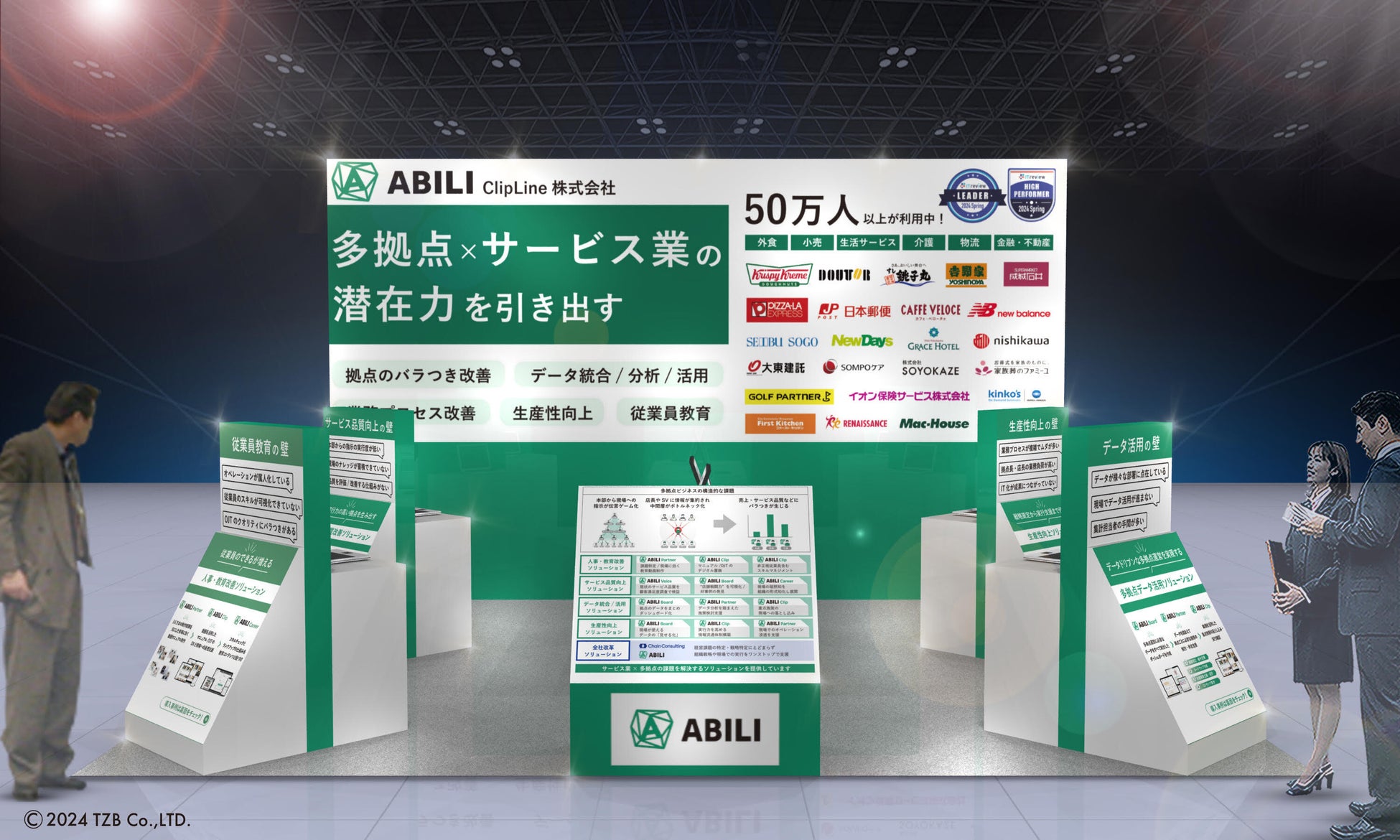 当社はサービス業×多拠点向けのプラットフォーム「ABILI」を出展します。ABILIはサービス業が抱える経営課題の可視化から解決策の実行まで実現する「サービステック」と、成果を創出するための「実行支援」を提供するソリューションです。当日のブースでは、サービス業×多拠点向けの成長を阻む壁を乗り越えるソリューションを、ABILIのデモンストレーションを交えてご紹介します。