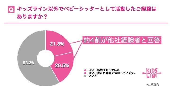 また調査対象者のうち41.8%が他社ベビーシッターサービスでの活動経験を持っており、より良い働き方を求めてキッズラインに登録していることが判明しました。