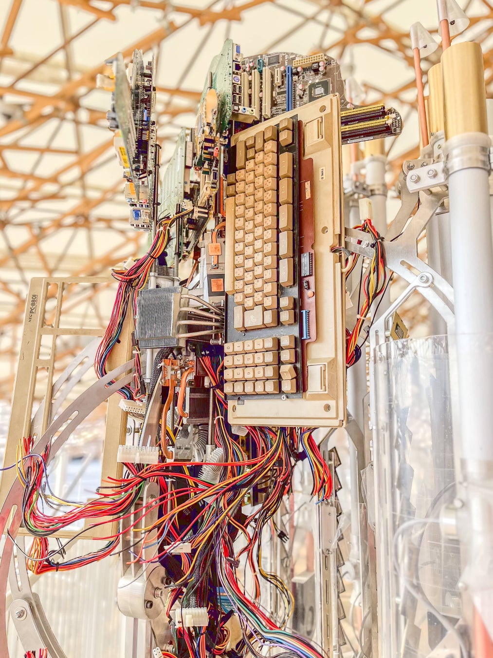 大阪・関西万博 シグネチャーパビリオン「いのちの遊び場 クラゲ館」で、パソコン・リサイクルを通じて製作した「転生オルガン」を展示