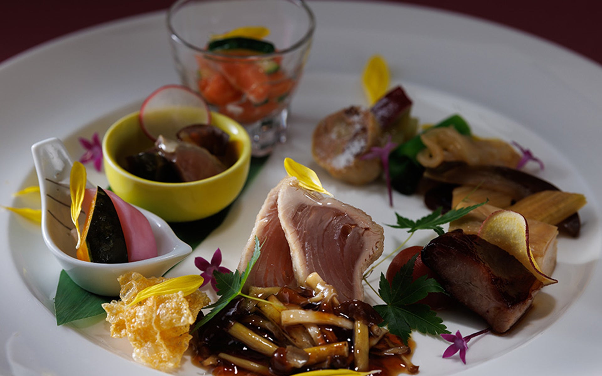 「THE DINING シノワ 唐紅花 & 鉄板フレンチ 蒔絵」は、中国料理とフレンチを自由に組み合わせて楽しめる新スタイルのレストラン。