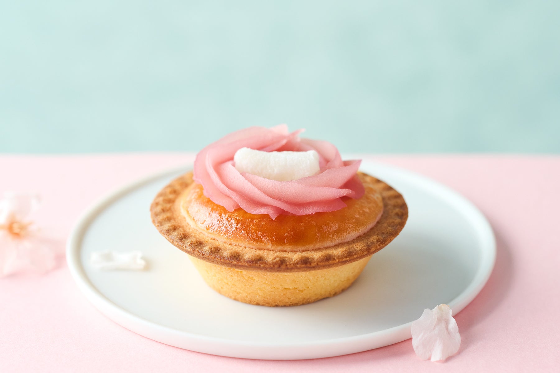 春らしいピンク色に染まった桜味のチーズムースに、国産桜の葉を混ぜ込んだ桜あんペーストを絞ったタルト。仕上げには求肥をトッピングし、食感のアクセントもお楽しみいただけます。ふんわり香る桜の風味とほのかな塩味が効いた甘じょっぱさに、「BAKE CHEESE TART」ならではの濃厚なチーズクリームが絶妙にマッチした商品です。