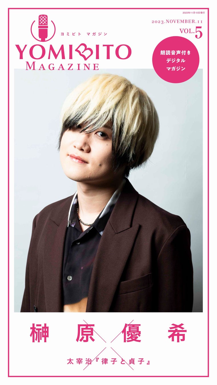 11月10日配信の最新号(vol.5)では、『ヒプノシスマイク -Alternative Rap Battle-』四十物十四役などで人気の榊原優希が、現代のラノベにも通じる軽妙な文体の短編小説『律子と貞子』(太宰治)を朗読。男女4人を見事に演じ分けた圧巻の朗読音声(約20分)のほか、16カットにおよぶ撮り下ろし写真やロングインタビュー、動画メッセージも収録した、声優・榊原優希の魅力が満載の一冊です。