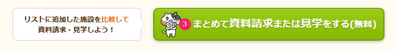 今回のアップデートでは、ユーザーがお気に入りリスト内で画面をスクロールしながら、施設情報を閲覧した最下部に「資料請求」ボタンが常時表示されるように変更されました。これにより、検討の流れを中断することなく、タイミングを逃さずに資料請求を行うことが可能です。また、複数施設の一括請求にも対応しており、操作の手間を最小限に抑えながら、必要な情報をまとめて取り寄せられる点も大きな魅力です。