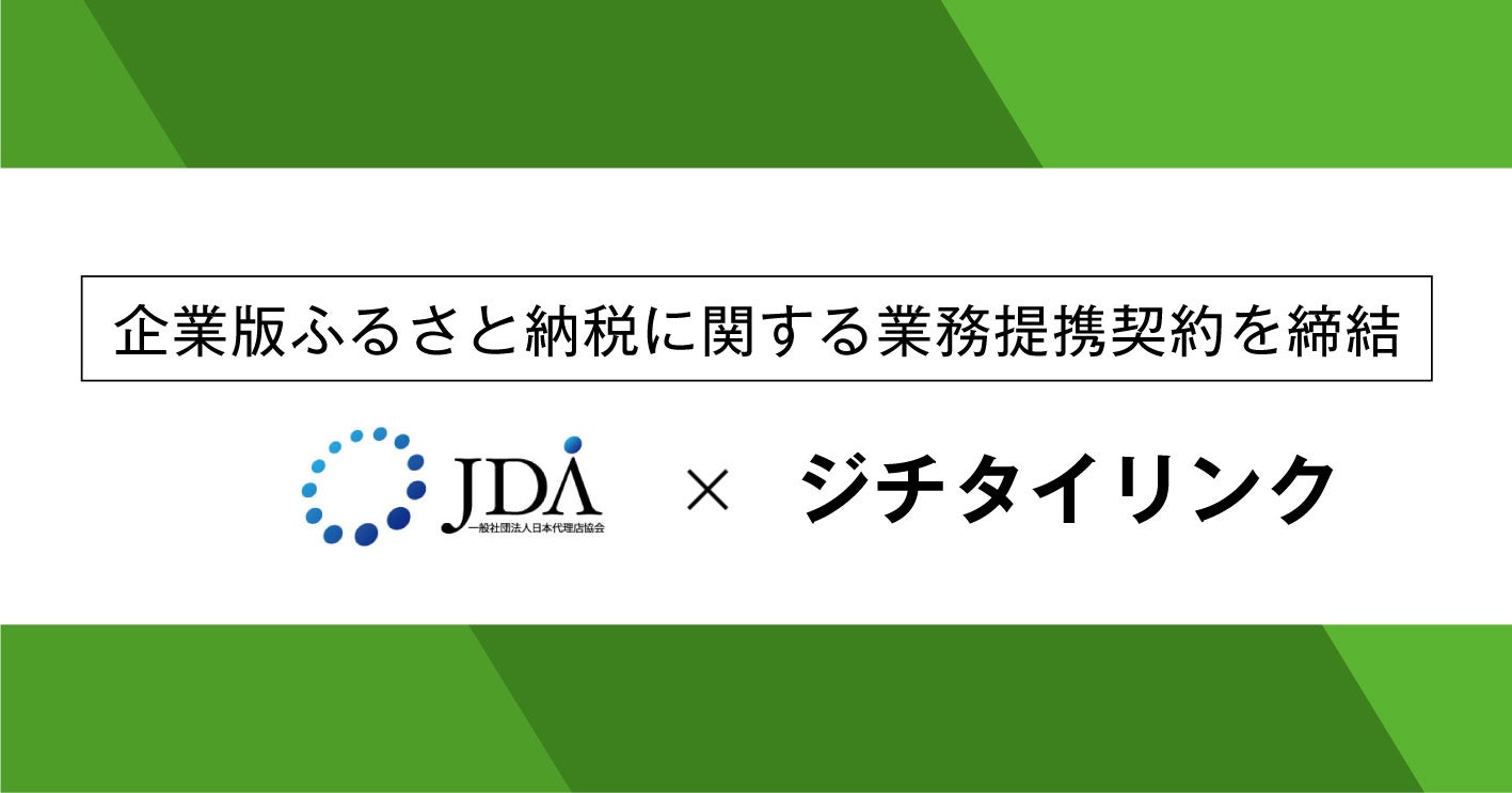 株式会社ジチタイリンク(本社:福岡県福岡市、代表取締役社長:松本銀士朗、以下「ジチタイリンク」)は、自治体と企業のマッチング、企業からの寄附手続きにおける支援までワンストップで実施する企業版ふるさと納税支援事業等を行っております。この度ジチタイリンクは、一般社団法人日本代理店協会(事務局所在地:東京都世田谷区、代表理事:佐藤康人、以下「日本代理店協会」)と、2026年4月9日(木)に企業版ふるさと納税における顧客紹介に関して業務提携契約を締結いたしましたので、お知らせいたします。