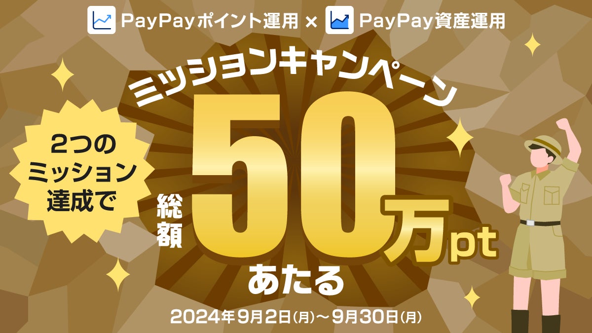 さらに、PPSCインベストメントサービスとPayPay証券株式会社(東京都千代田区、代表取締役社長執行役員CEO:番所 健児、以下「PayPay証券」)は、「ポイント運用」と、同じく「PayPay」内のミニアプリである「PayPay資産運用」の双方を利用された方を対象とした「ミッションキャンペーン」を同じく9月2日より開催します。それぞれのキャンペーンの詳細はキャンペーン概要をご覧ください。