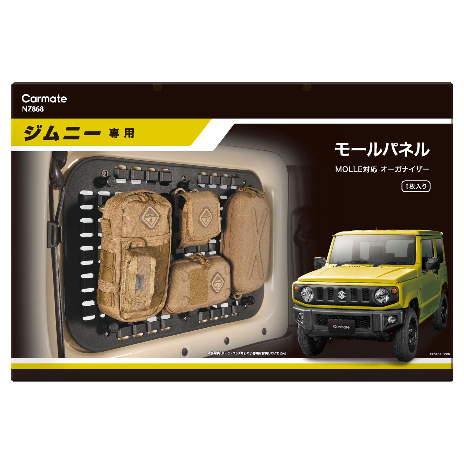 株式会社カーメイト(本社:東京都豊島区)は、ジムニーのリアサイドウィンドウに取り付ける、"モールシステム"に対応した壁面収納アイテム「ジムニー専用 モールパネル」を1月18日(木)に発売しました。窓枠にぴったりはまる専用設計のモールパネルで、アウトドアギアなどの小物類をスマートに収納することができます。詳細は以下をご覧ください。