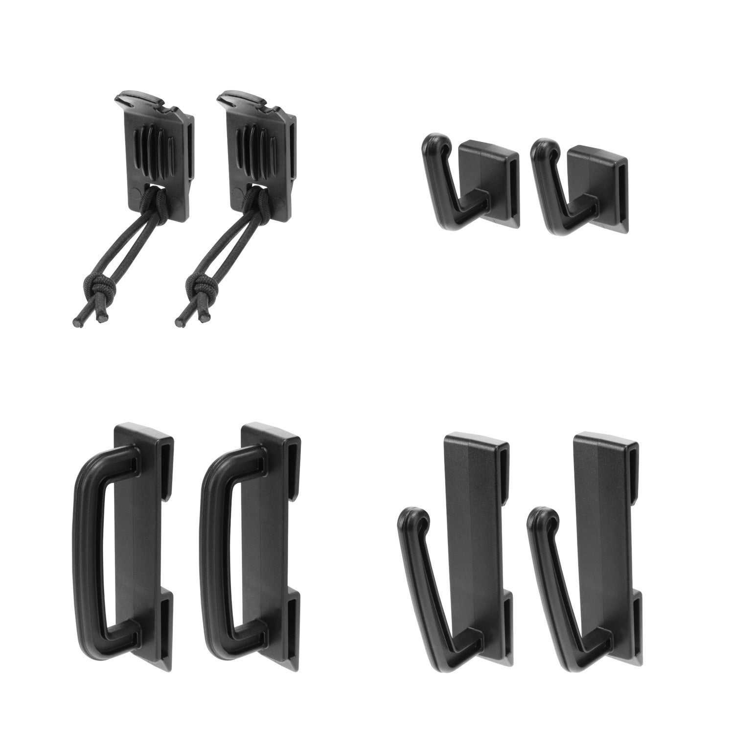 形状が異なる4種類のアタッチメント(各2個)を付属。"モールシステム"に対応していない、アウトドアギア、車載する小物なども簡単に取り付けることができます。
