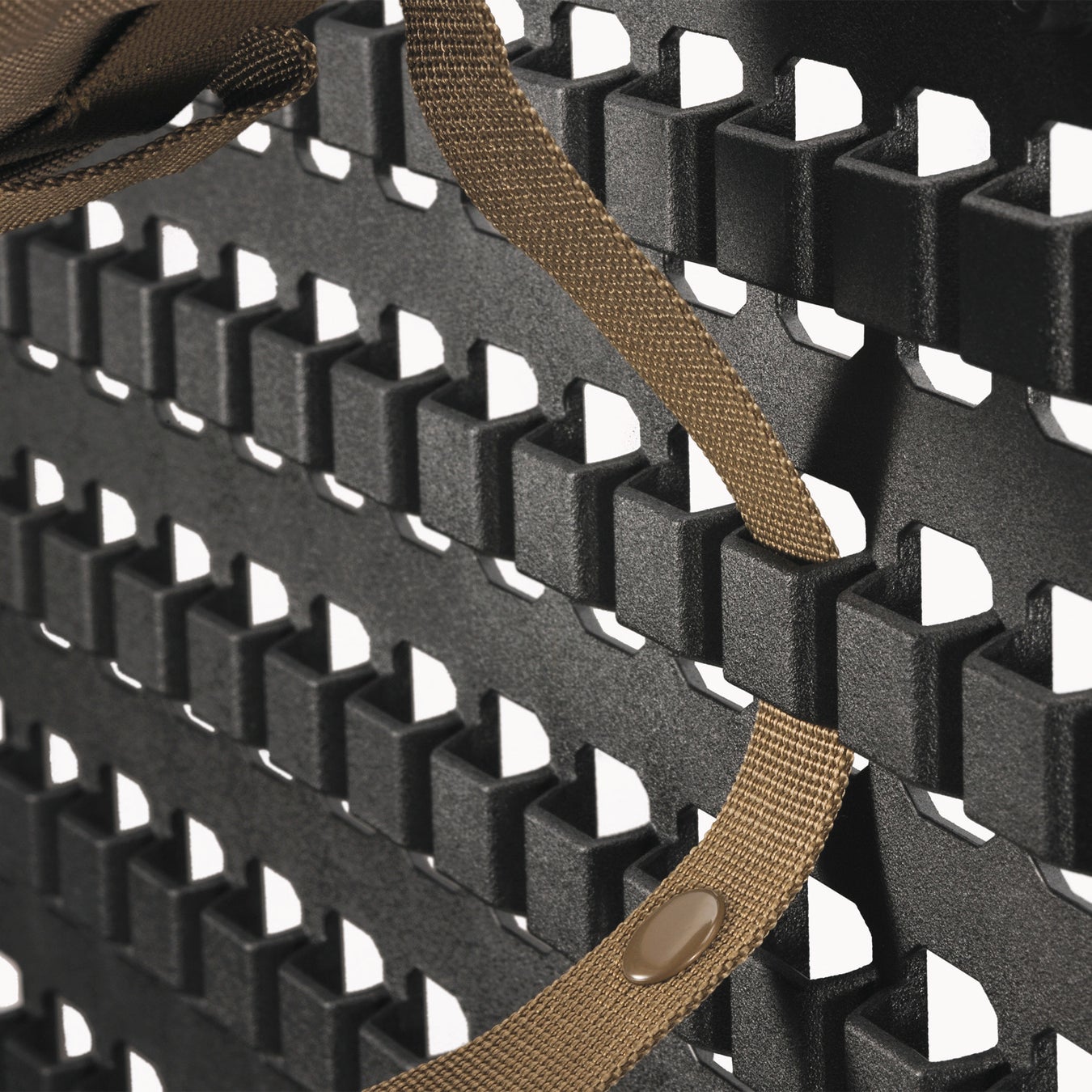 穴が開いただけの平面パネルとは異なり、凹凸をつけたオフセット構造を採用。ポーチを始めとした"モールシステム"に対応アイテムのベルトを通しやすい穴の形状、幅、高さとなっております。