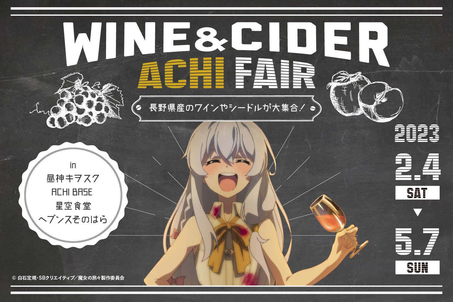 日本一の星空「長野県阿智村」の株式会社阿智昼神観光局(代表取締役社長:白澤裕次)が運営する、『観光拠点施設ACHI BASE』、『SHOP & CAFÉ & about HIRUGAMI昼神キヲスク』、『阿智村 星空食堂』と、天空の楽園NIGHT TOUR会場の『富士見台高原ロープウェイ ヘブンスそのはら』の4施設にて、2023年2月4日(土)~5月7日(日)までの期間、40種類を超える長野県産ワイン、シードルが楽しめる『WINE&CIDER ACHIFAIR』を開催いたします。