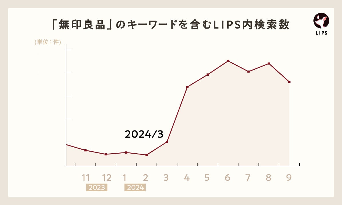 今年の3月に入ってからの検索ボリュームが右肩上がりな点に着目。2023年8月発売の『発酵導入美容液』が美容オタクだけでなく、一般層にまで評判が広がり、LIPSで商品やクチコミレビューをチェックする人が増加したことが要因として考えられます。
