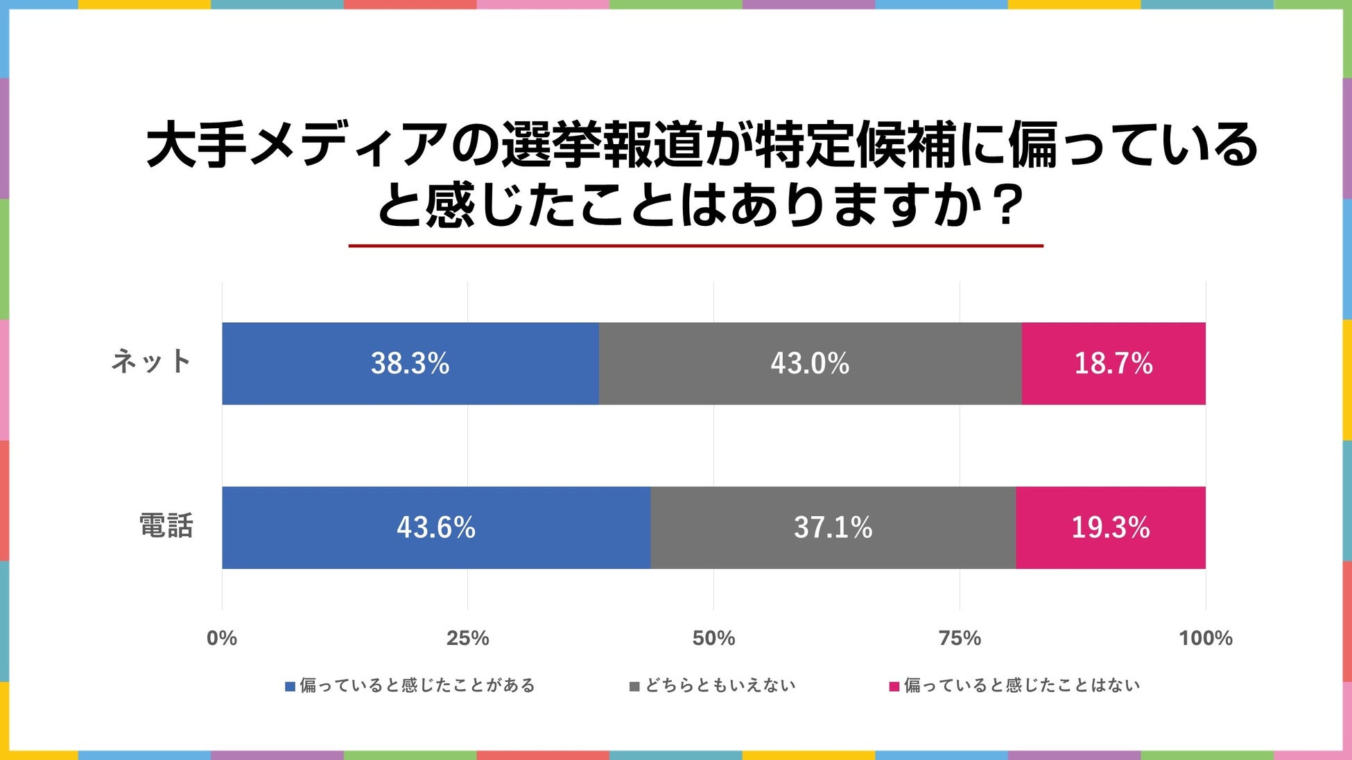 「あなたは、選挙において新聞・テレビなどの大手メディアの報道が特定候補に偏っていると感じたことはありますか?」と聞いた結果が上の図です。