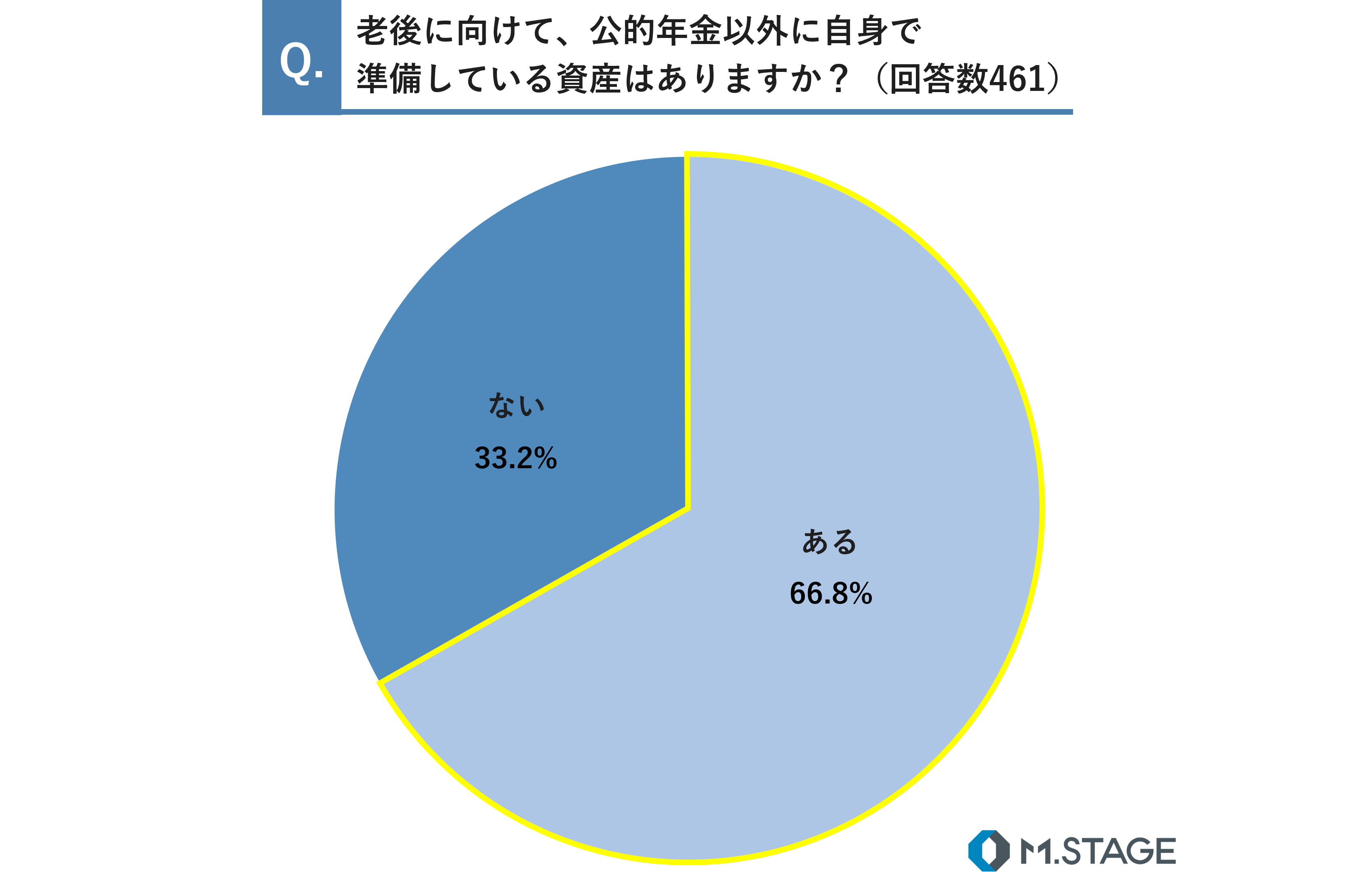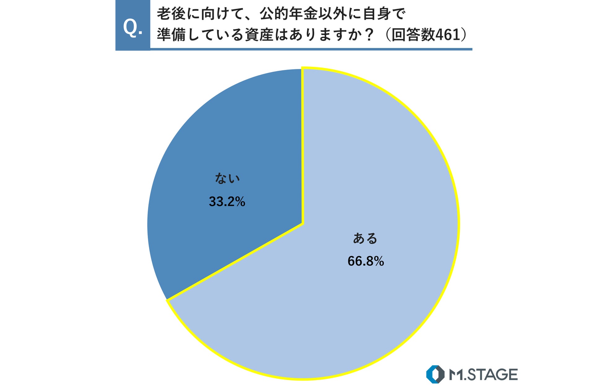 老後に向けて、準備している資産が「ある」と回答した医師は66.8%となり、6割を超える医師が資産を準備していることがわかりました。具体的な資産については、「NISA(少額投資非課税制度)」(180)が最も多く、「預貯金」(169)、「iDeCo(個人型確定拠出年金)」(167)が続く結果となりました。