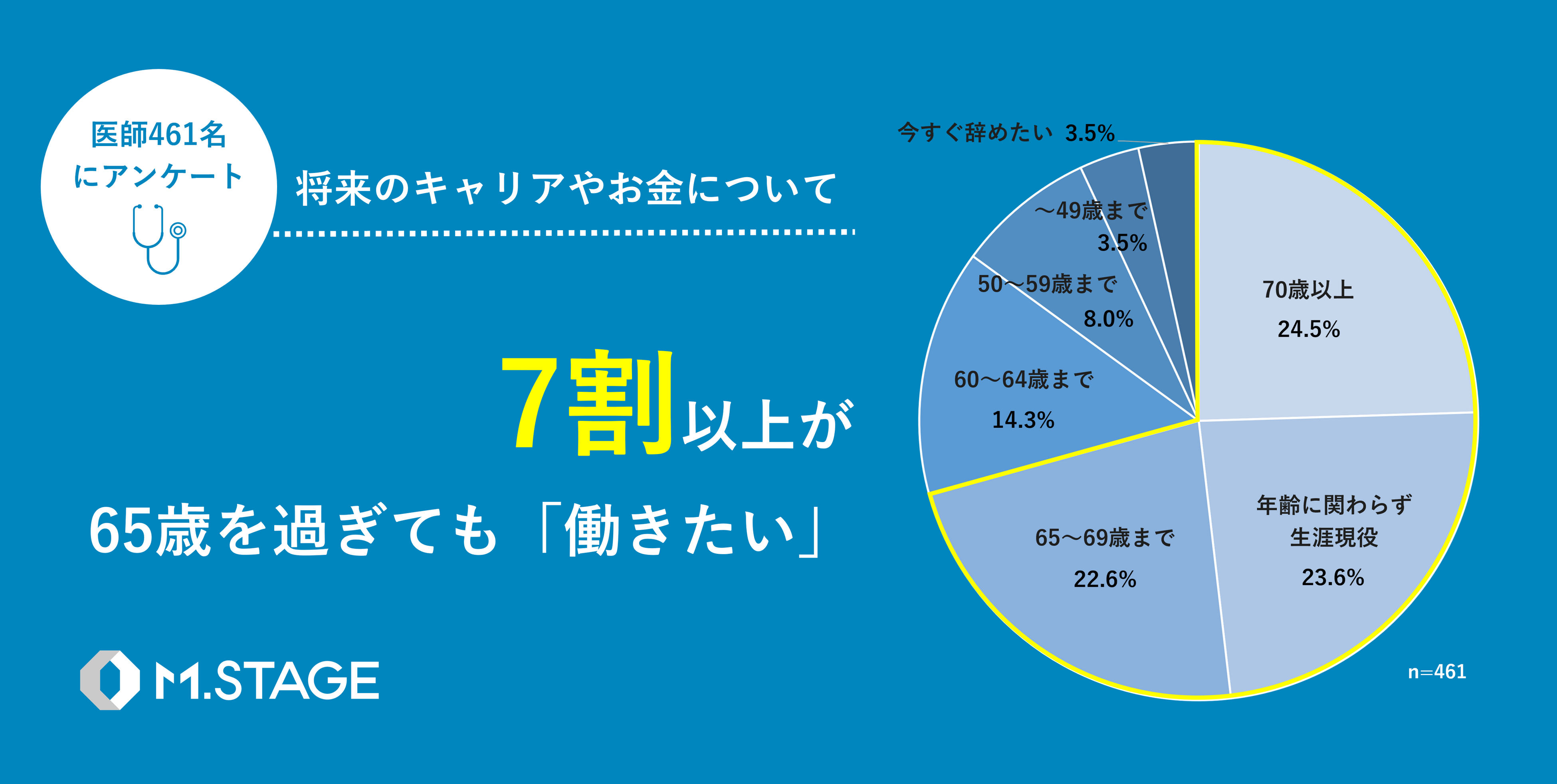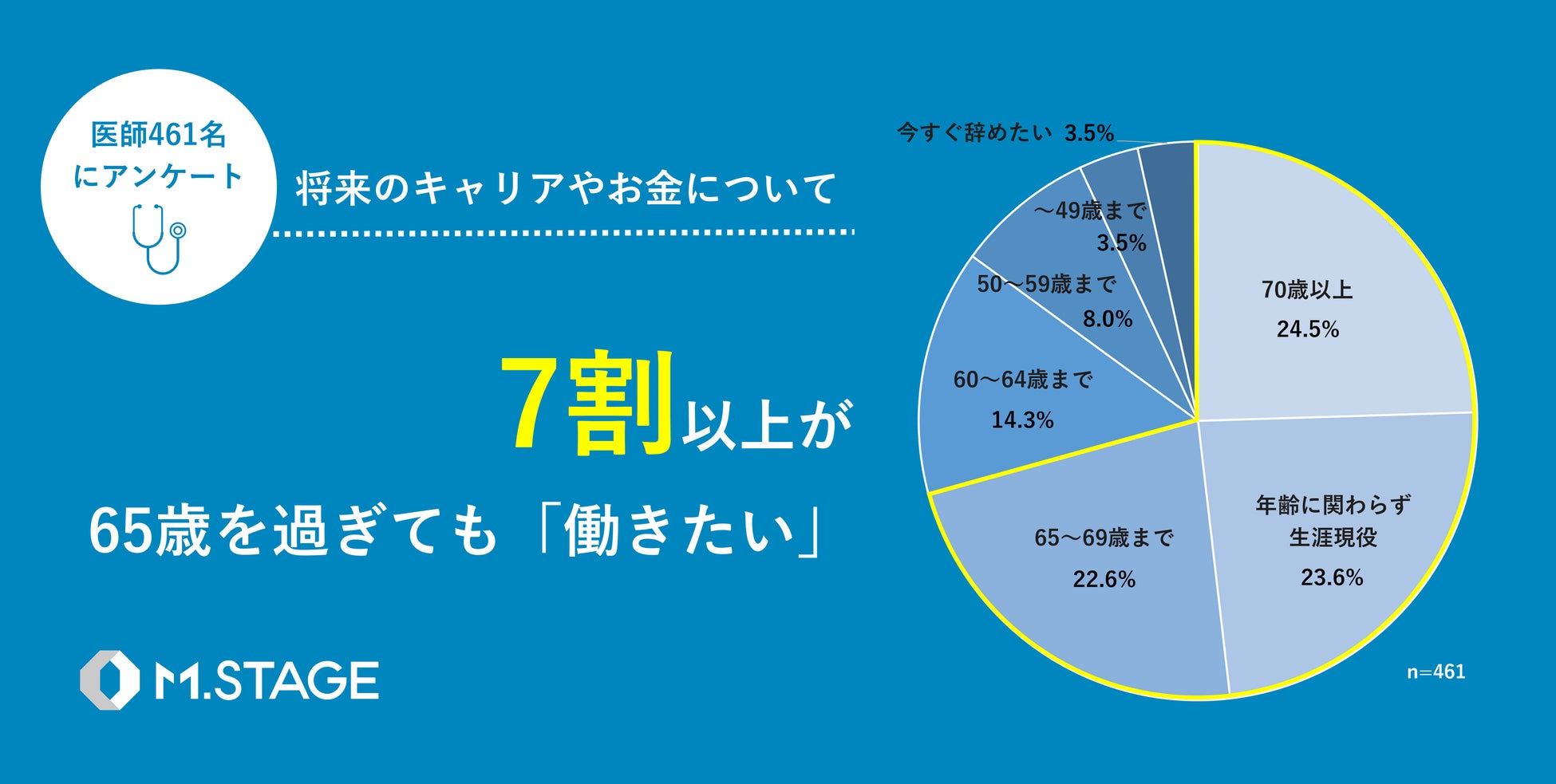 【医師461名に「将来のキャリアやお金」に関するアンケートを実施】74.6%が将来に「不安」70歳以降も働きたいが最多