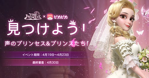 スマートフォン向けゲームアプリのグローバルメーカーIGG(グループCEO: Zongjian Cai 香港証券取引所上場 日本所在地:東京都新宿区)は、3DドレスアップRPG「タイムプリンセス」が音声コミュニティ「ピカピカ」にて、ボイスコンテスト『見つけよう!声のプリンセス&プリンスたち!』の開催を発表いたします。
