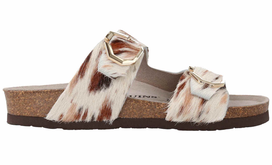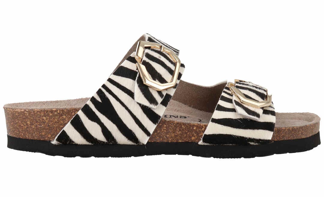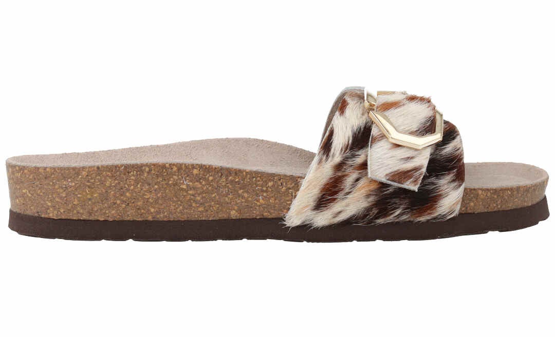 LWG(※)ゴールド認定のレザーにアニマルプリントを施した新モデル。人体構造に基づいて設計された天然コルクのミッドソールとフォームのフットベッドが足をサポートし、足への圧力を分散。安定性を向上させ、快適な歩行を実現。2箇所のバックルは調整可能、アウトソールには軽量EVAを採用。