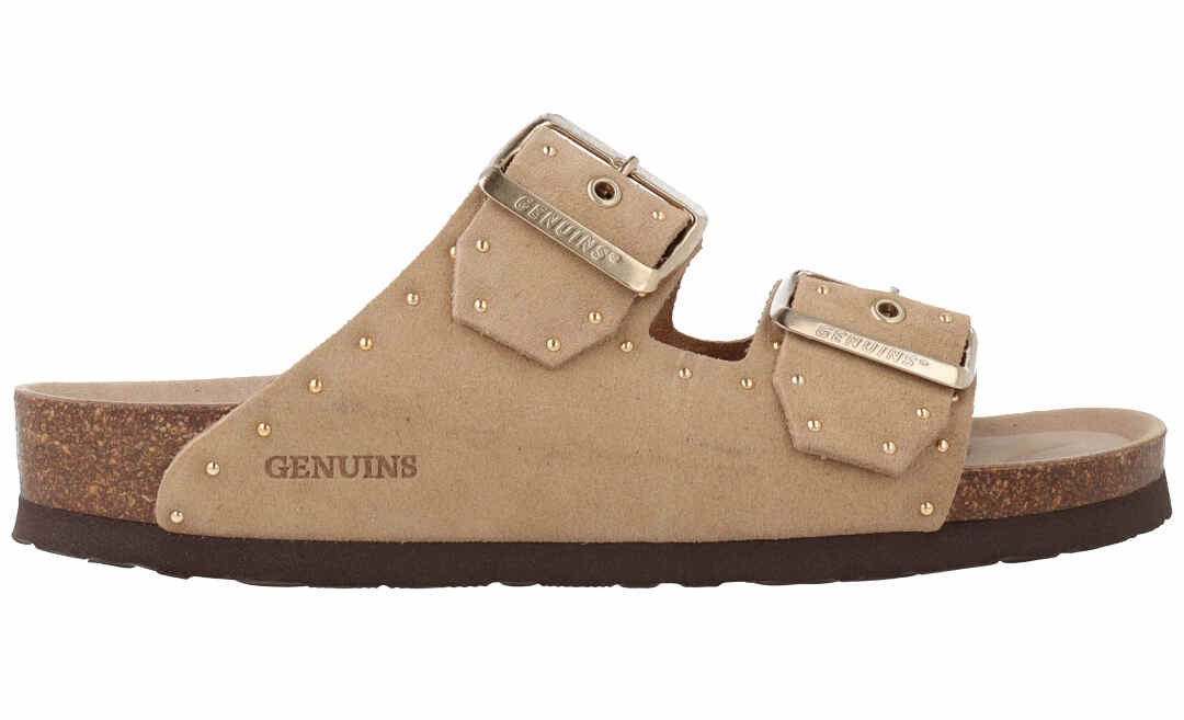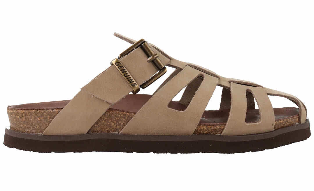 「GENUINS」のサンダルは、人体構造に基づいて設計された天然コルクとフォームで形成され、足を入れた瞬間から感じられるソフトな履き心地と高いクッション性のフットベットが特徴。安定感があり歩きやすく、ファッションに合わせて選べるデザインも魅力です。